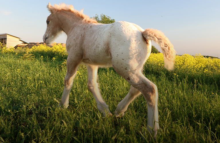 Сейчас заводчики ждут результатов генетической экспертизы, лабораторные исследования позволят уточнить масть. Вариантов два: чубаро-соловый или чубаро-буланый. Точно можно сказать одно: таких лошадей в мире наперечёт.
