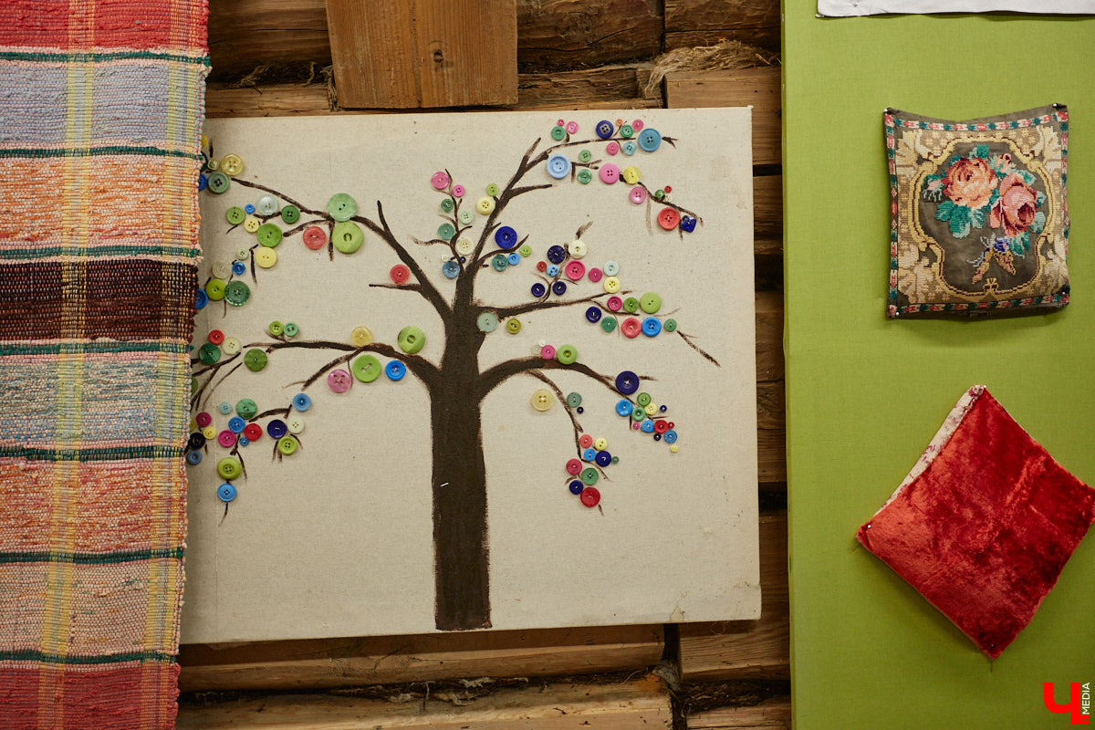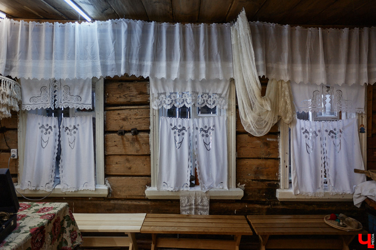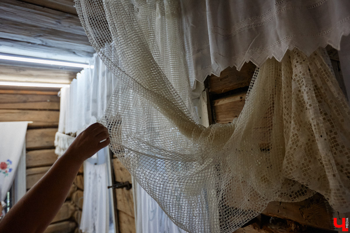 Судьба бревенчатого строения определилась с первыми занавесками. Когда-то они принадлежали бабушке нашей героини и долго ждали своего часа в шкафу. Как только ими украсили окна «Соляриса», пазл сложился. Сейчас там уже несколько вышитых шторок, и все со своей историей.