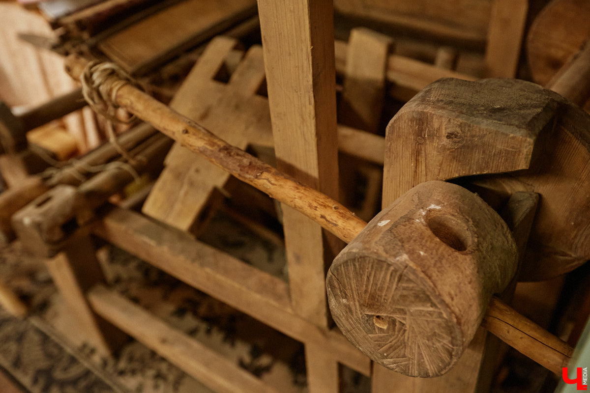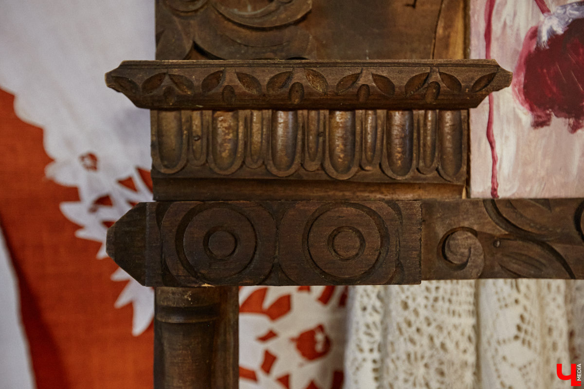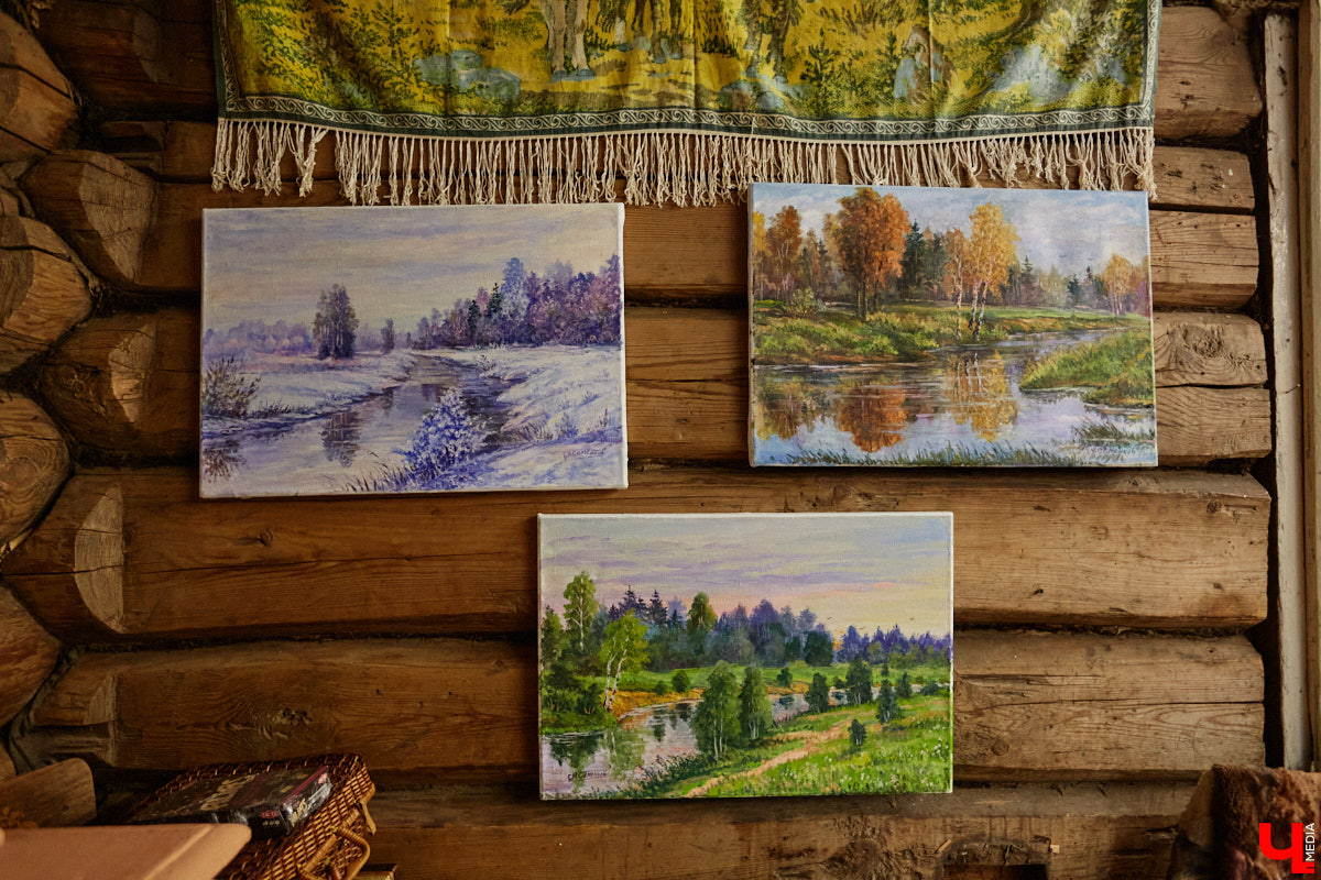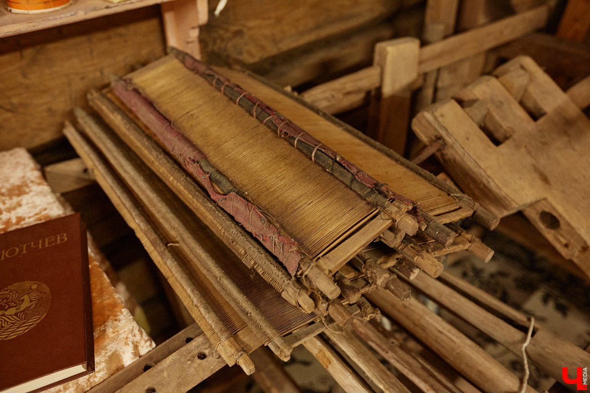 На стенах дома висят картины художника, который реставрировал фрески Рублева. Также среди экспонатов комод, ткацкий станок и патефон с набором пластинок. Услышать голос Лидии Руслановой в здании с двухсотлетней историей — совершенно особенный вид эстетического удовольствия! Сравнивать цифровые записи с потрескиванием пластинки даже не стоит. Атмосфера совсем другая.