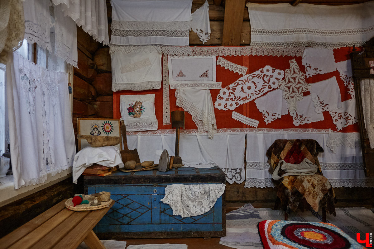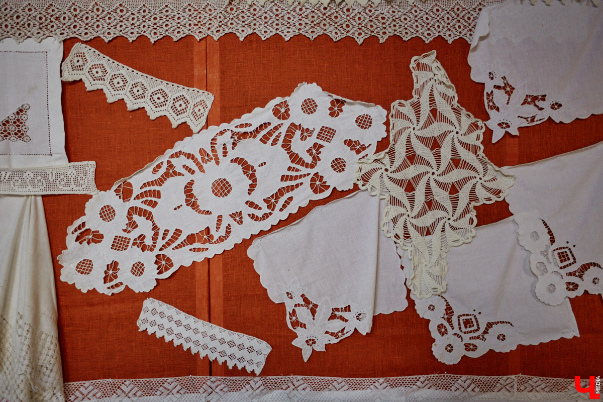 Сколько сейчас в доме предметов, точно не скажешь! Хозяева бревенчатого строения только начали опись своей необычной коллекции. Одних текстильных экспонатов больше ста. Вот еще одна любопытная вещица — скатерть, вышитая вручную иголкой.