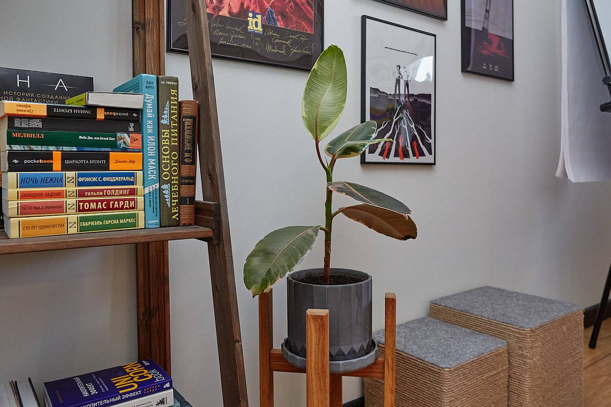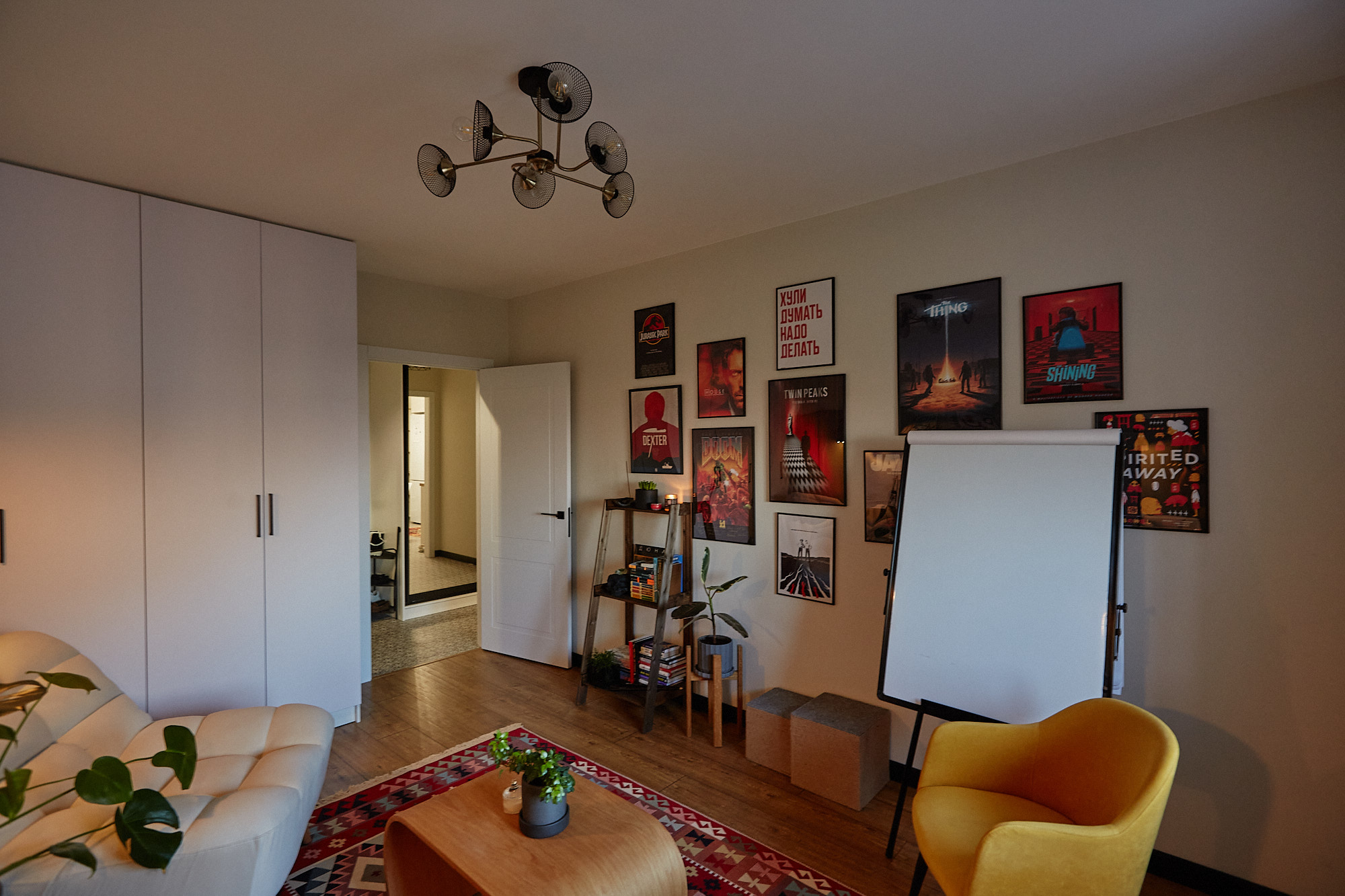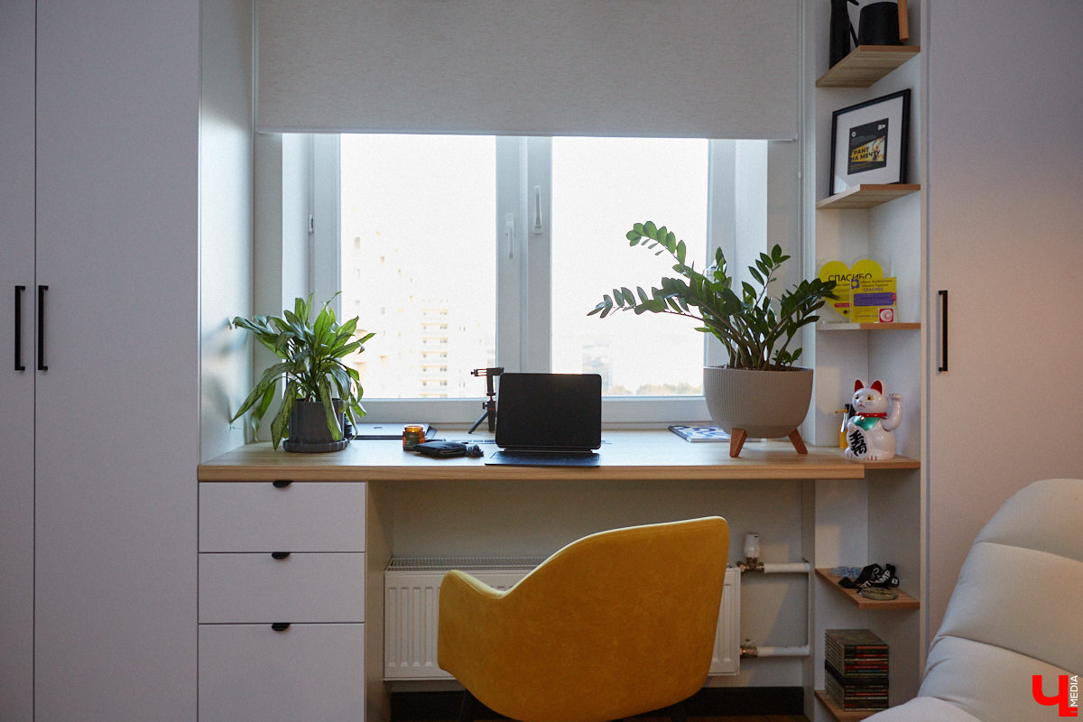 Пара долго шла к своим целям в бизнесе и сейчас сосредоточена на росте дохода, но уже во Владимире, где им больше не тесно. Ребята купили квартиру, где скоро начнут делать авторский ремонт, а сейчас снимают жилье на проспекте Строителей – договорились с хозяином на долгосрок. Искали пустое помещение с отделкой в хорошем доме, достаточно просторное, чтобы организовать домашний офис. Никита и Сабина работают дистанционно, поэтому нуждаются в атмосферном уголке, где их продуктивность будет максимально высокой. Насмотренность, натренированная в путешествиях, позволила обустроить комнату со вкусом.