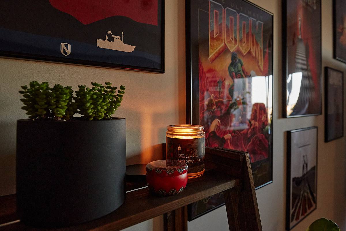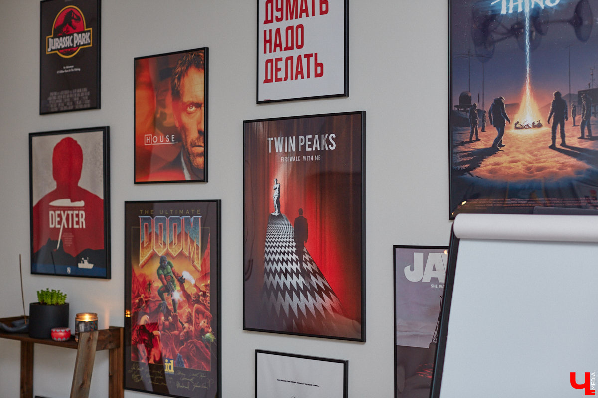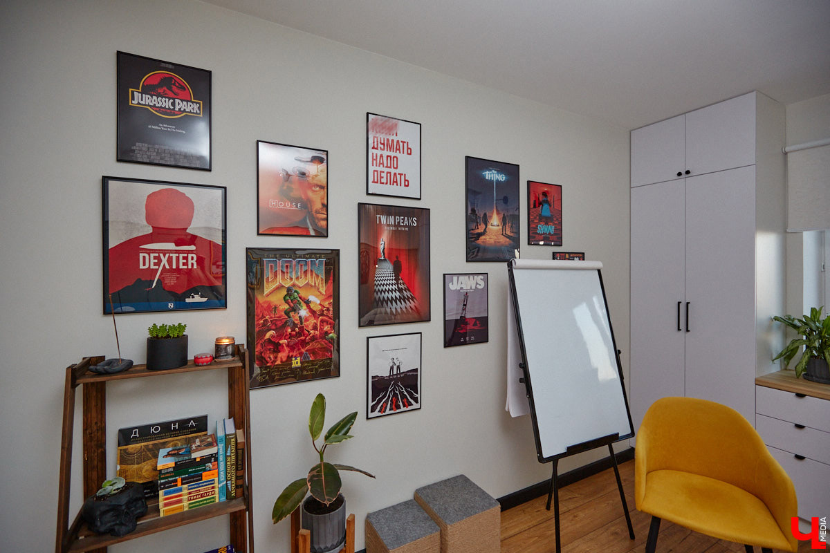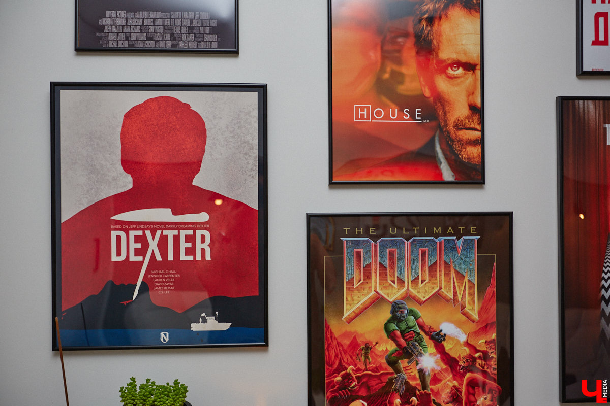 В удобных креслах можно расположиться с ноутбуком, на визуализацию работают постеры любимых фильмов, сериалов, игр. Тихая спокойная музыка и аромат свечей помогают расслабиться, с умом организованный свет позволяет трудиться в любое время суток.