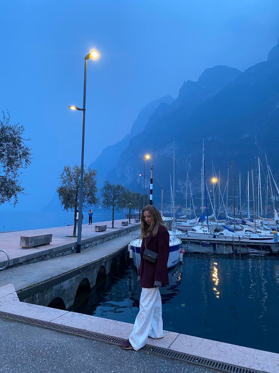 «Далее мы поехали вверх, вдоль озера Гарда — жемчужины Италии. Невероятные кипарисы, цветущие мимозы, уют городков, водная гладь, синие горы — всё это завораживает. Ночевали на севере в предгорье Альп в коммуне Роверето. Как жительнице небольшого населенного пункта, мне милы такие провинции. Нам даже удалось устроить пробежку по живописным тропам — любим привносить спорт в наши путешествия. Далее мы попали в