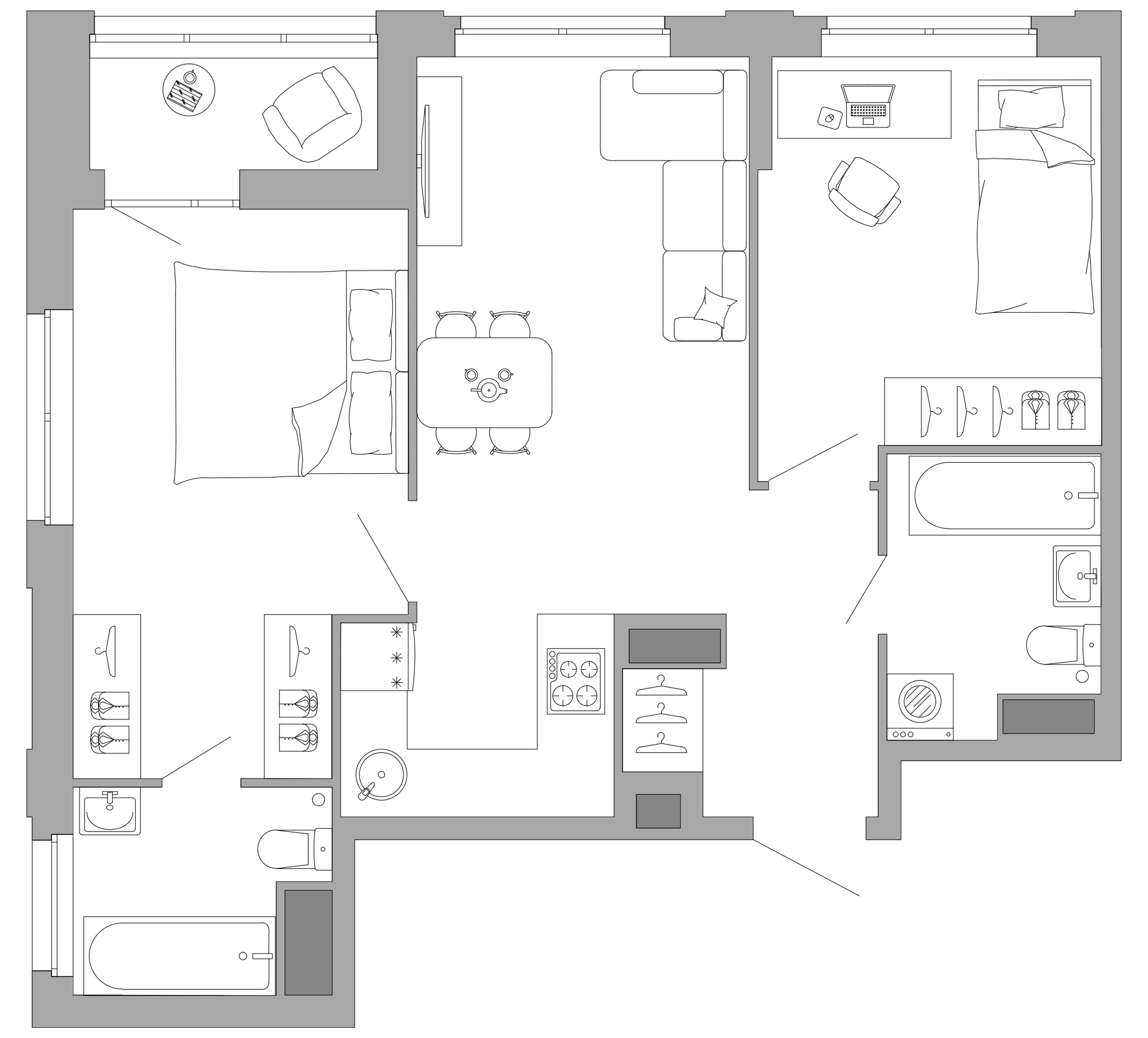 Просторная и светлая планировка с анфиладной спальней, которая включает дополнительный санузел в ванной комнате и обширную гардеробную, идеально подойдет для семьи с одним или двумя детьми. В родительской ванной комнате предусмотрено окно, что сделает пространство еще более светлым. В квартире также удобно и то, что детская и родительская комнаты расположены в противоположных сторонах квартиры. Так каждый получит больше личного пространства.