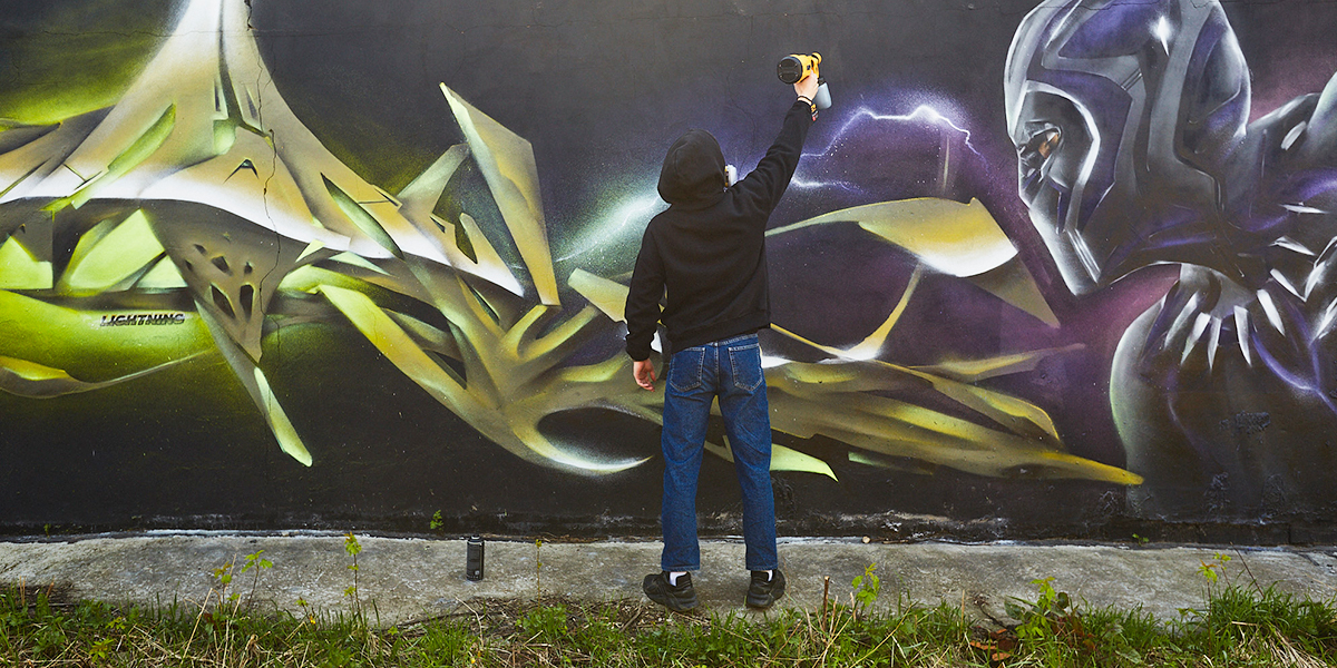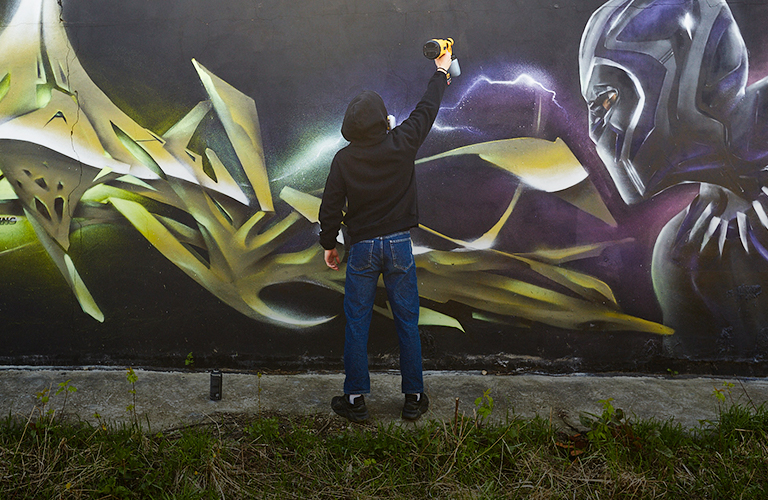Мимо популярных героев, например, из комиксов, райтер тоже не проходит. Так, недавно на стене одного из технических объектов появился супергерой из вселенной Marvel — Черная пантера.