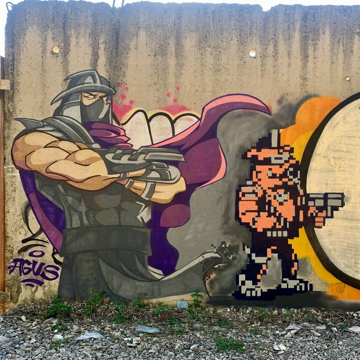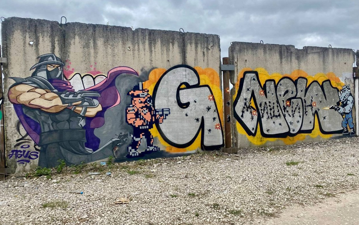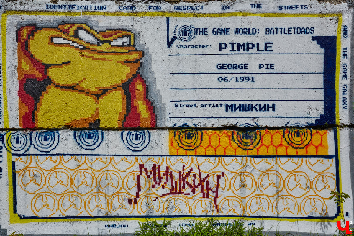Еще одно произведение появилось в Коврове. Там владимирский художник созидал в коллаборации с Ильей Sugrob и Никитой Quire. В результате сотворческого процесса непримечательную стену заселили персонажи из игры «Черепашки ниндзя».