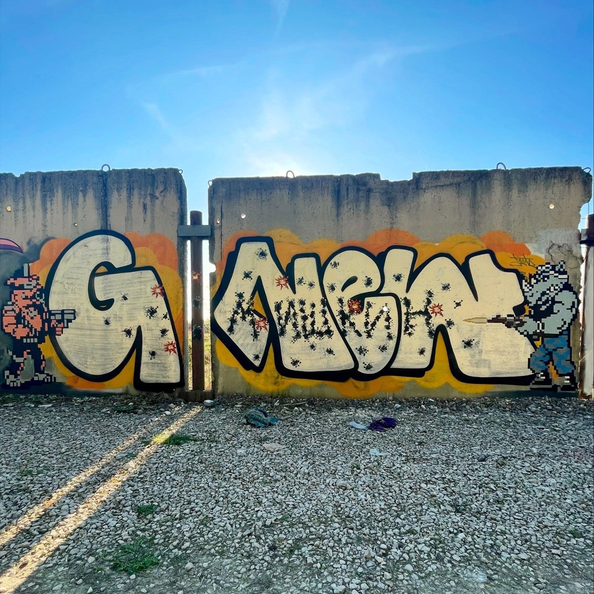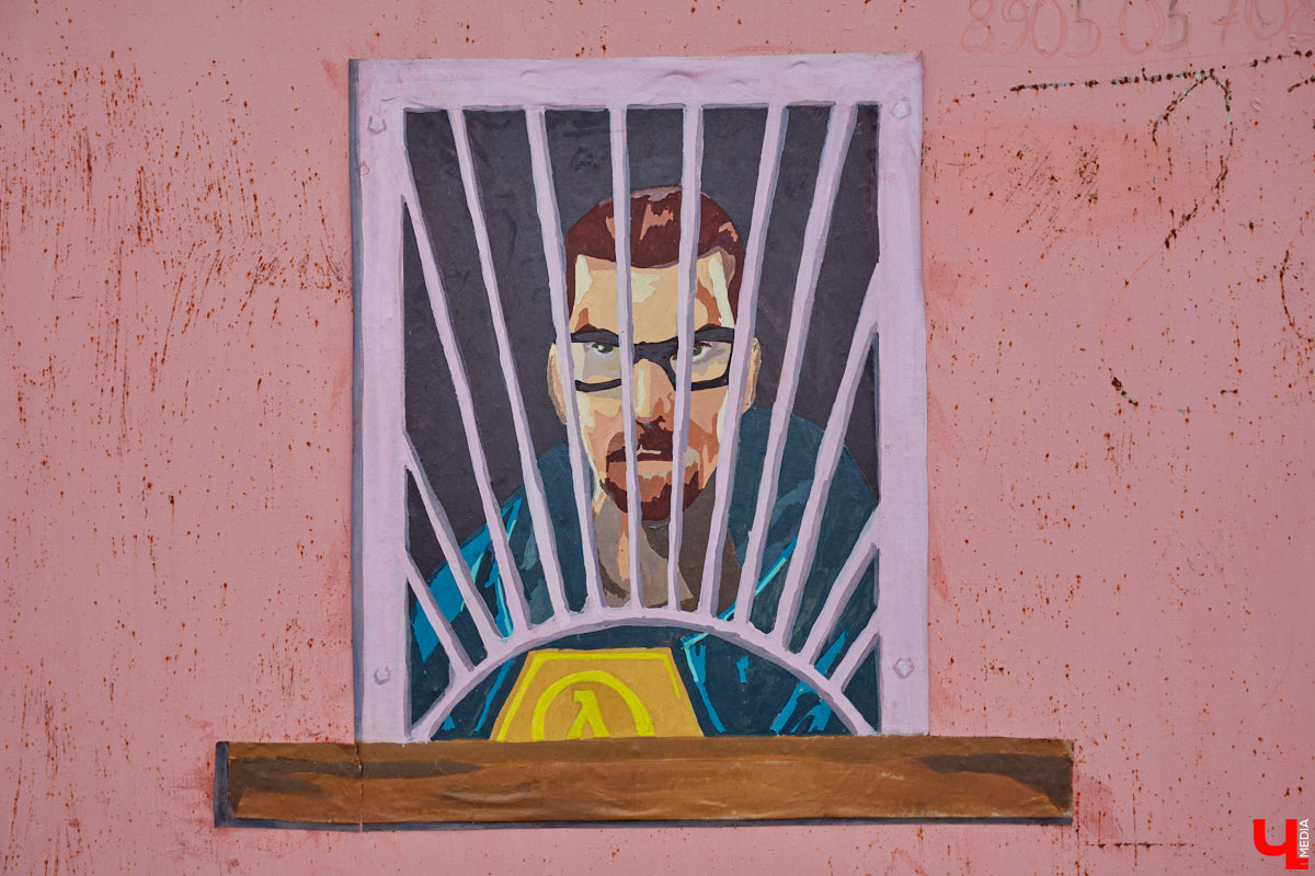 Сразу два известных фантазийных героя поселились на просторах областной столицы благодаря известному городскому художнику. В Заклязьменском по его милости за решеткой очутился главный персонаж игры Half Life Гордон Фримен. Вдохновила Мишкина на работу ржавая надпись на гараже «Куплю лом».