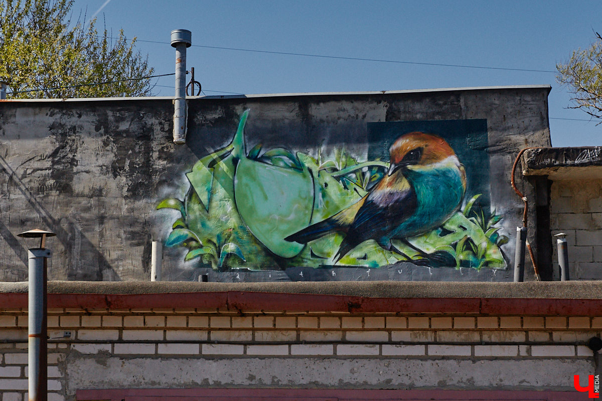 Благодаря им улицы оживают, а серые унылые стены превращаются в холсты. Свободные художники упорно распространяют искусство, зная, какой порой короткий век отведен их произведениям. Во Владимире новые стрит-арты появляются с завидным постоянством, и не все из них «вне закона». К примеру, в прошлом году пиксельный шлюп от Мишкина украсил здание школы № 28, а мультяшное оборудование ВЗПО Евгении Зверской стало частью пространства гастрорынка. Недавно любимый город пополнился еще несколькими любопытными работами от местных райтеров. Все они отдалены от центра, поэтому «Ключ-Медиа» поспешил подсветить рисунки, рискующие остаться без внимания.