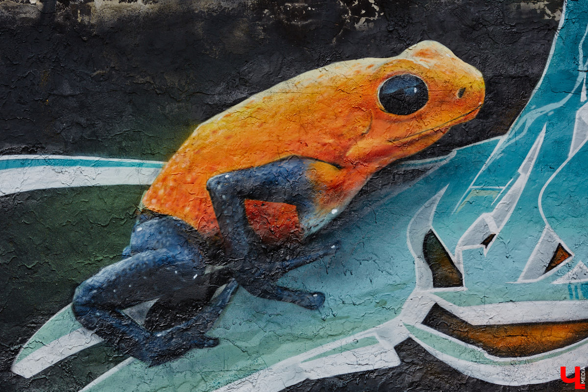 Анонимный райтер продолжает вписывать живую природу в свои работы. Причем украшением служат не только пернатые, но даже лягушки, выступающие дополнением к объемным авторским шрифтам.