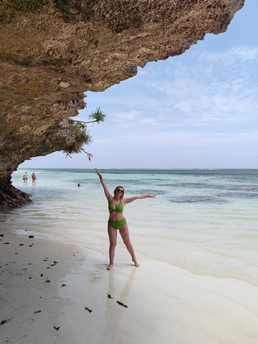 «Мы поселились в отеле в африканской деревушке под названием Кендва. Большая береговая линия, шаговая доступность океана. Для расширения кругозора объездили почти все пляжи в поисках наиболее красивого. Поразили скалистый Мтенде, плантации водорослей и рыбацкие лодки Джамбиани, колоритный Падже с песком таким мелким, как мука. Но самое живописная локация оказалась в соседней Нунгви, где под небольшими каменными глыбами мы прятались в тени, а потом купались в прозрачном ласковом океане», — вспоминает она.