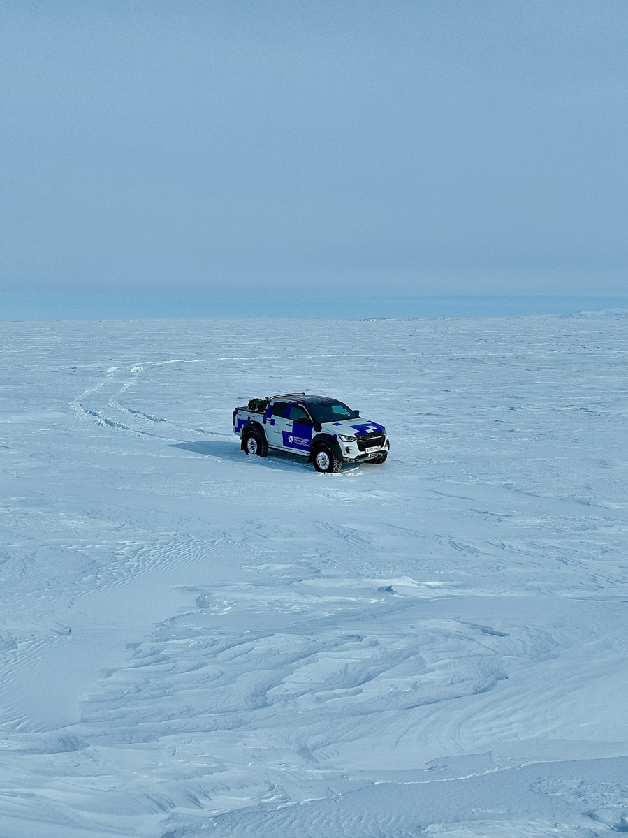 Действительно, ехали экспедиторы по диким местам, где практически ничего нет, кроме бесконечного белого простора.