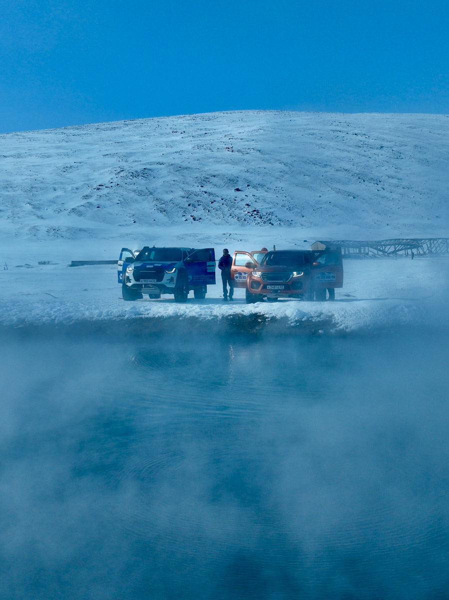 Ребятам улыбнулась удача заглянуть в традиционное жилище чукчей — ярангу, а также насладиться горячими источниками в Лорино. Для замерзших путников такая находка стала величайшим даром. Впрочем, разогревались они разными способами. Например, Рустам с Александром успели принять участие в самом восточном забеге России и Евразии. Наш герой решился на полумарафон. Говорит, сначала погода держалась отличная, однако вскоре налетела метель, видимость упала до двух-трех метров. Был страх встретить медведя, так как спортсмены натыкались на следы хищника. Но, к счастью, все прошло гладко.