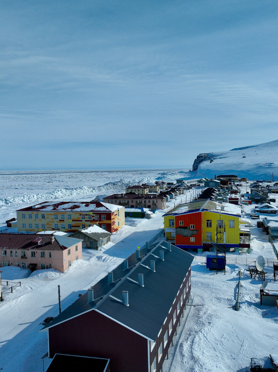 Через Билибино, один из самых дорогих городов России, и Певек, где удалось заночевать в общежитии у метрологов, кочевники добрались до Прииска Ленинградского — поселка золотодобытчиков. После него, по словам Рустама, дорог уже не было, остались одни направления. Там ребята достигли 180-го меридиана, проходящего через Чукотку, — это та самая международная линия перемены дат, а еще посетили заброшенный поселок Мыс Шмидта, где осталось жить всего несколько семей.