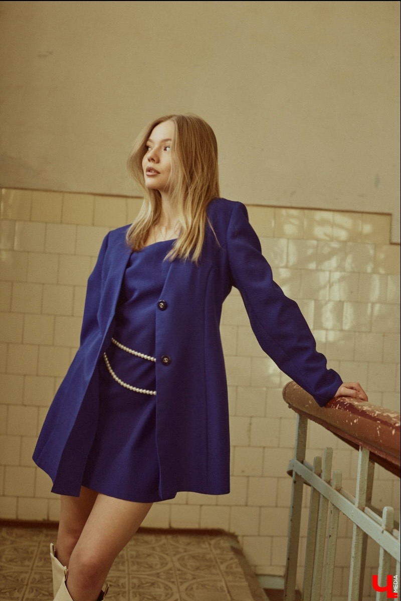 Третий лук получился максимально изящным и практически абсолютно винтажным, хотя с первого взгляда так и не скажешь. Именно в этом платье с пиджаком ходила мама Марины в молодости, а сейчас синяя пара пригодилась дочке. Дополняют комплект часы «Чайка», тоже доставшиеся по наследству. Наша героиня решила не покупать новый аксессуар, а носить тот, который хранит историю.