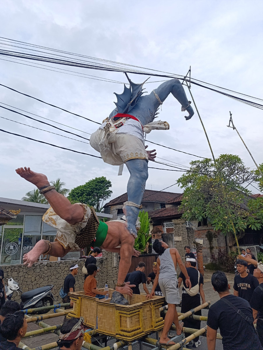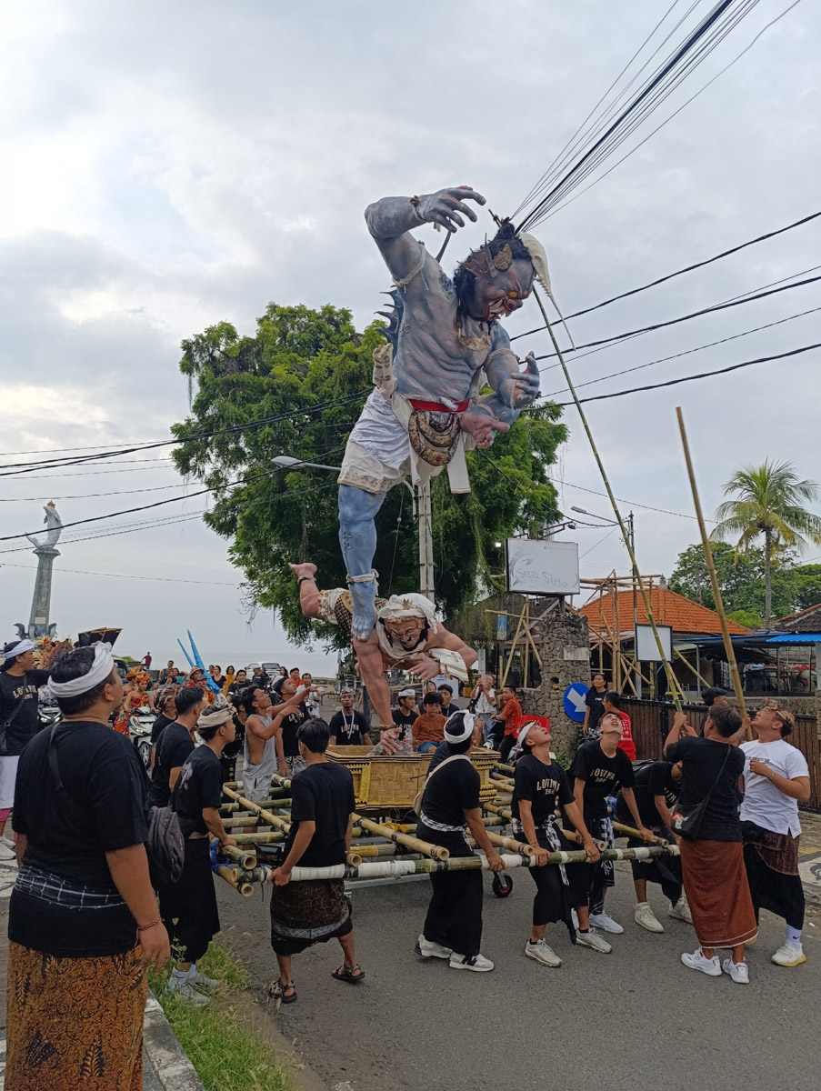Попасть на Nyepi — все равно, что оказаться внутри антиутопии. За сутки до праздника улицы Бали заполонили 10-метровые чудища из бамбука и ткани. Старики объяснили жестами, что потом их сожгут. На рассвете остров замер: запрещалось шуметь, включать свет и даже выходить из отеля.