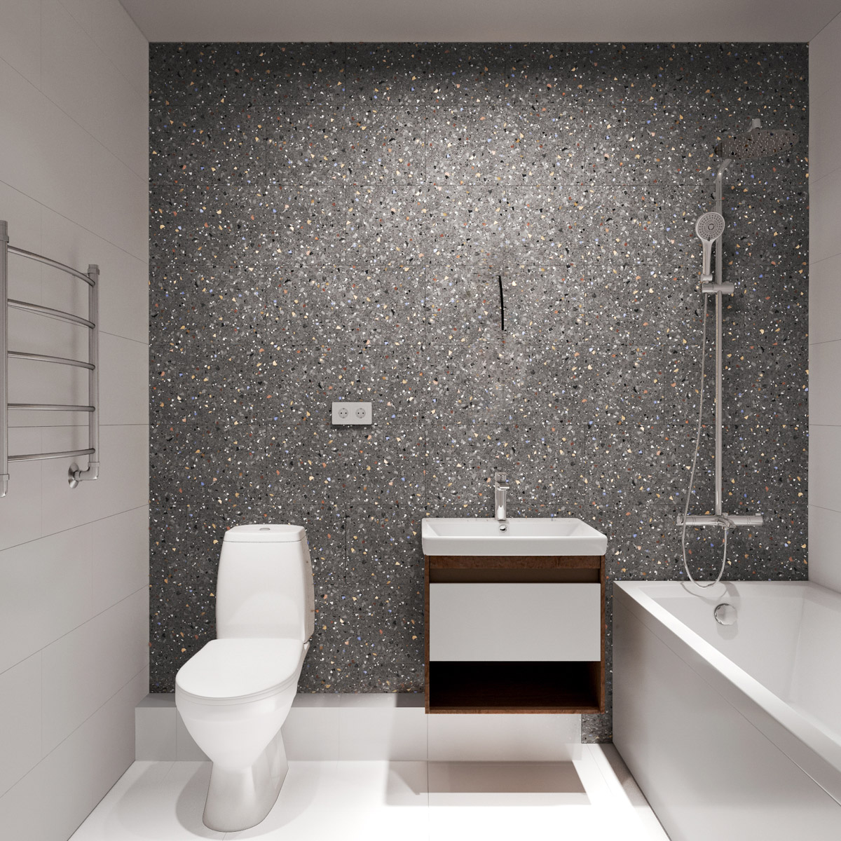 Отделка «Ультралофт» от GloraX — это сочетание White box с чистовой отделкой в санузле. Это оптимальный вариант для тех, кто не хочет выполнять ремонт в ванной своими силами и доставлять тяжелую плитку, заниматься утомительным выбором смесителей, шкафчиков и другой фурнитуры, а также монтажом ванны или душевой кабины. Все работы в санузле будут выполнены к моменту передачи ключей! Кроме того, возможны два цветовых решения на выбор — темный и светлый дизайн.