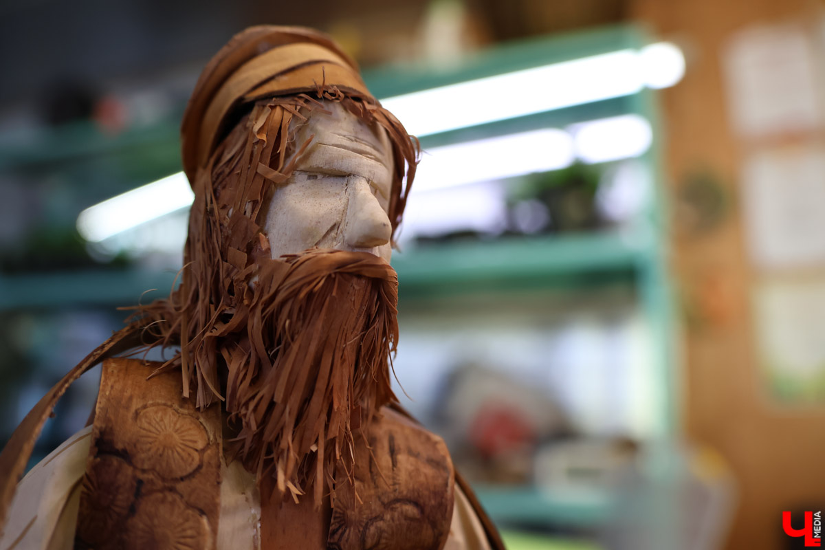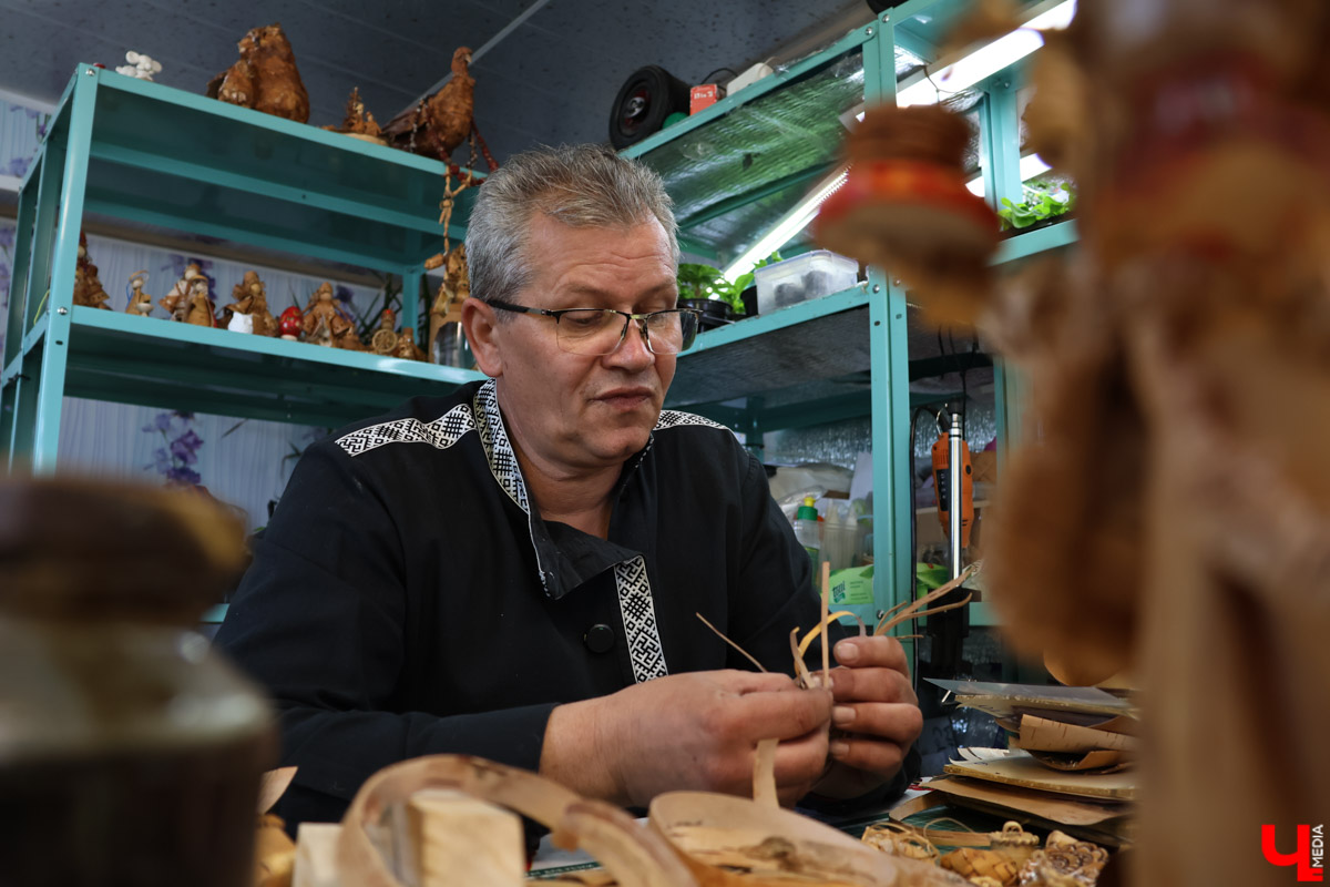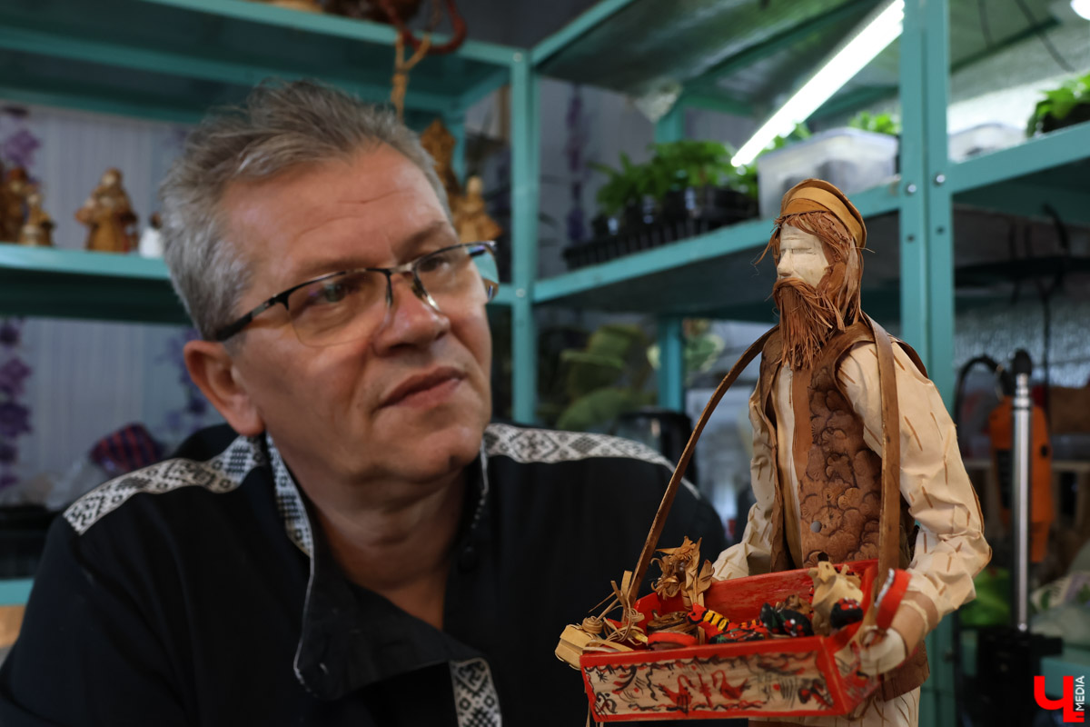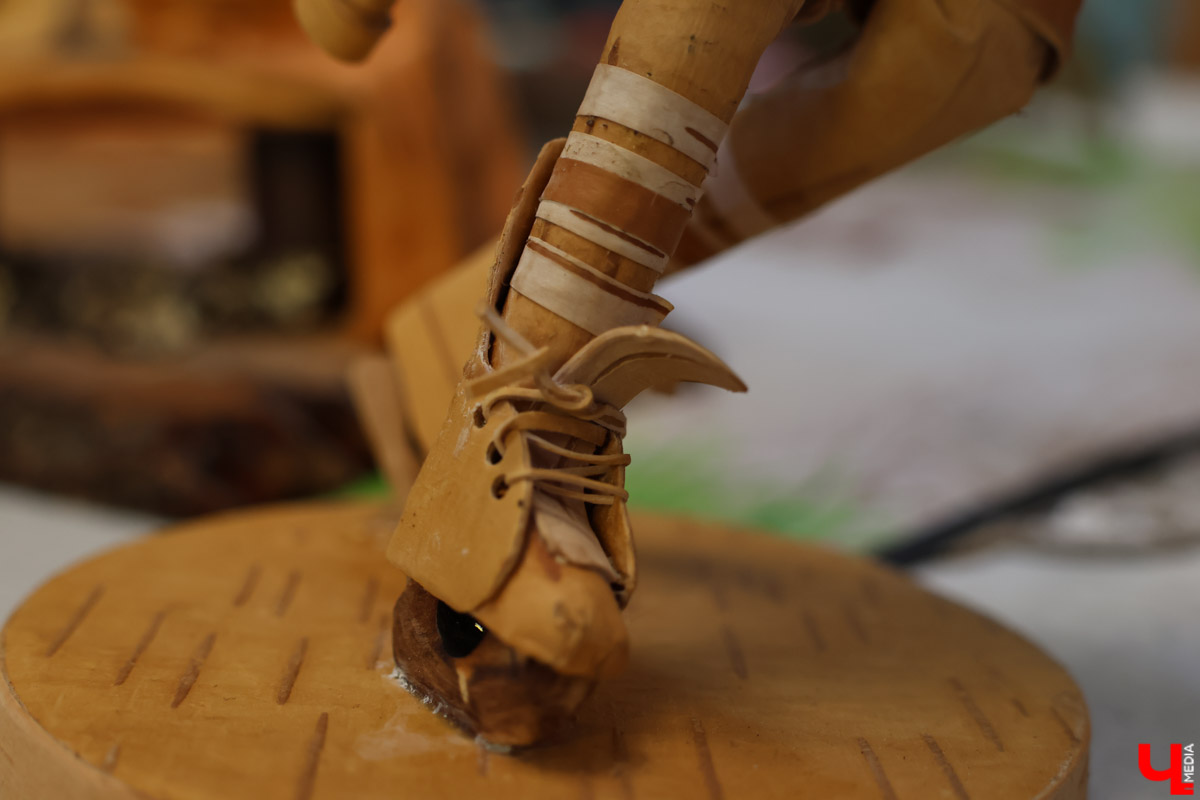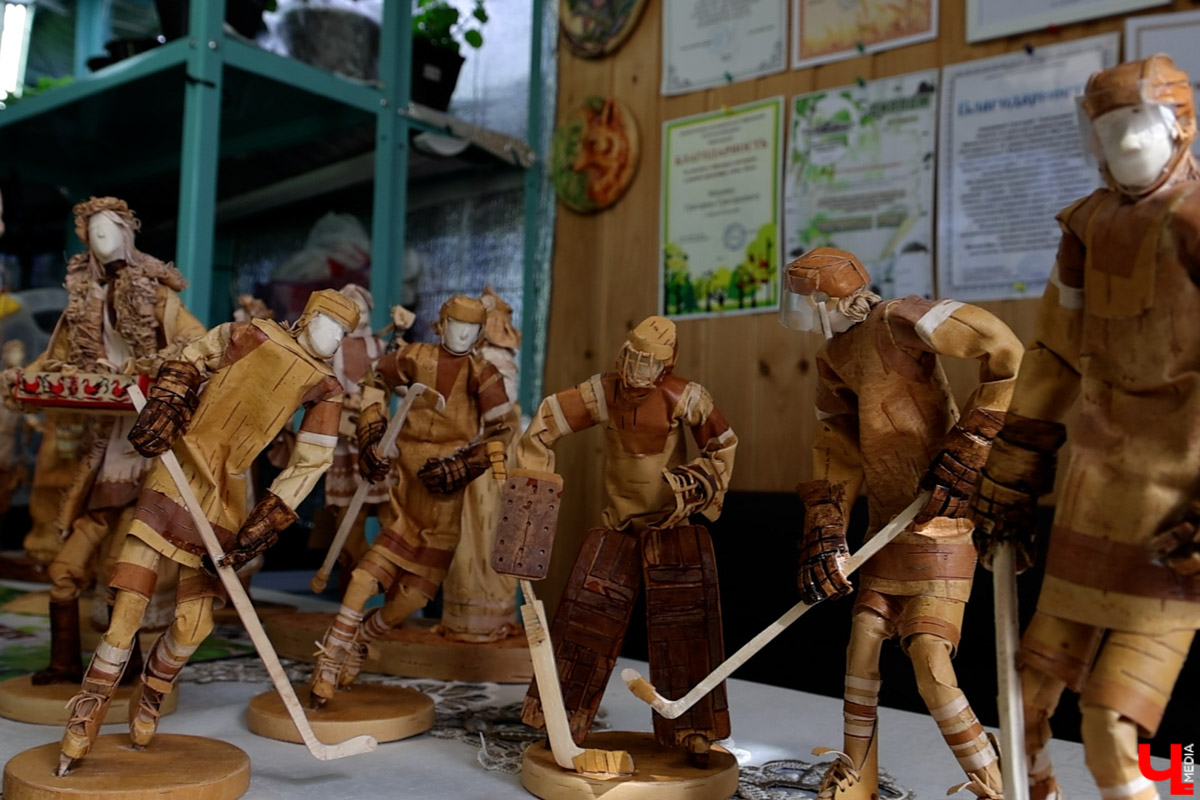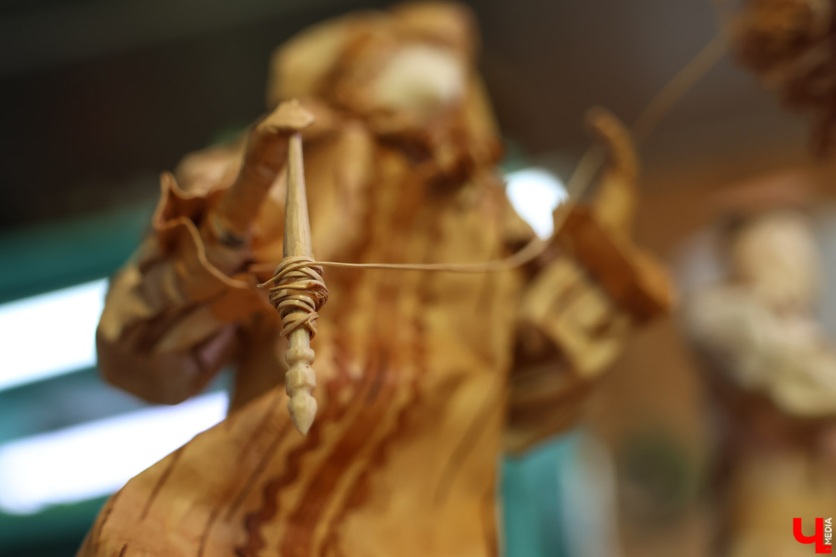 Вы видели когда-нибудь скульптурные композиции из бересты? Если нет, самое время заглянуть в гости к мастеру из Юрьев-Польского района Григорию Мишину. В этом году его работа вошла в число лучших сувениров Золотого кольца. Судьи отметили коробейника, выполненного из коры березы. Хотя на главный приз могла претендовать любая фигура: от хоккеистов до русской барышни с самоваром или балерины в пачке и на пуантах. Все куклы выполнены в единственном экземпляре и каждая настоящий шедевр.