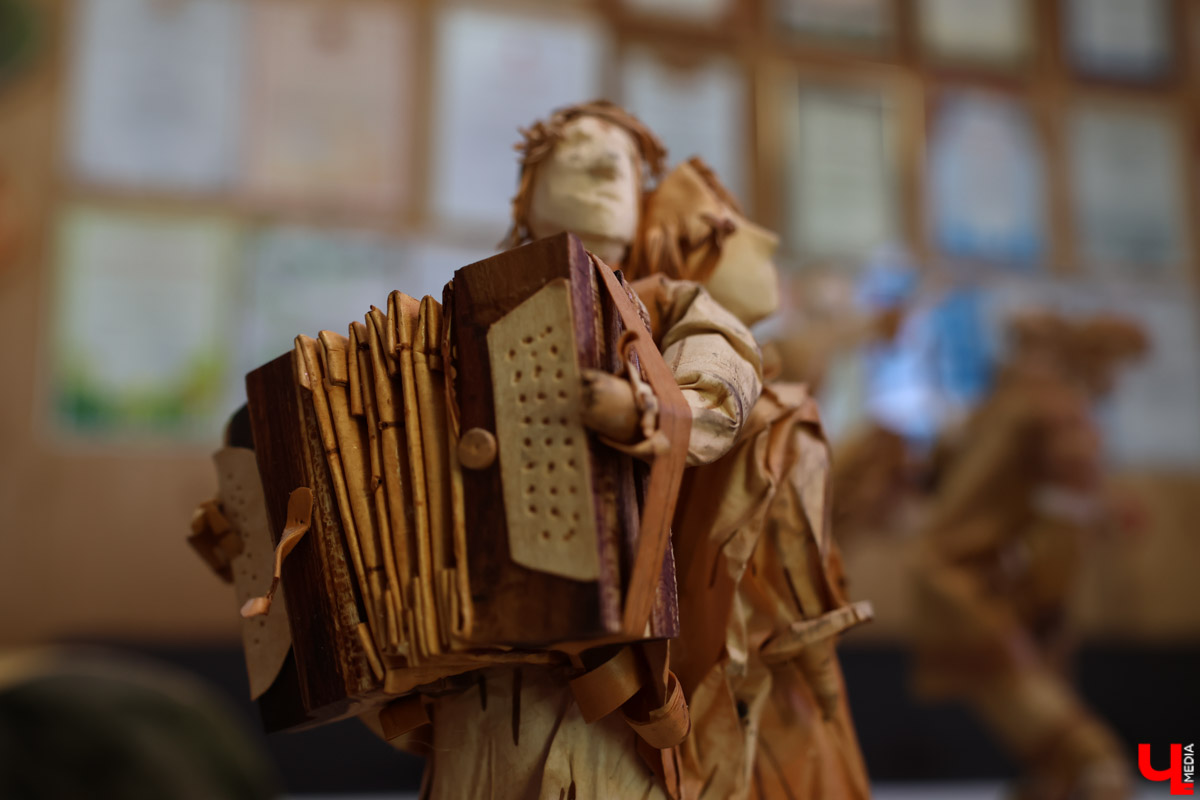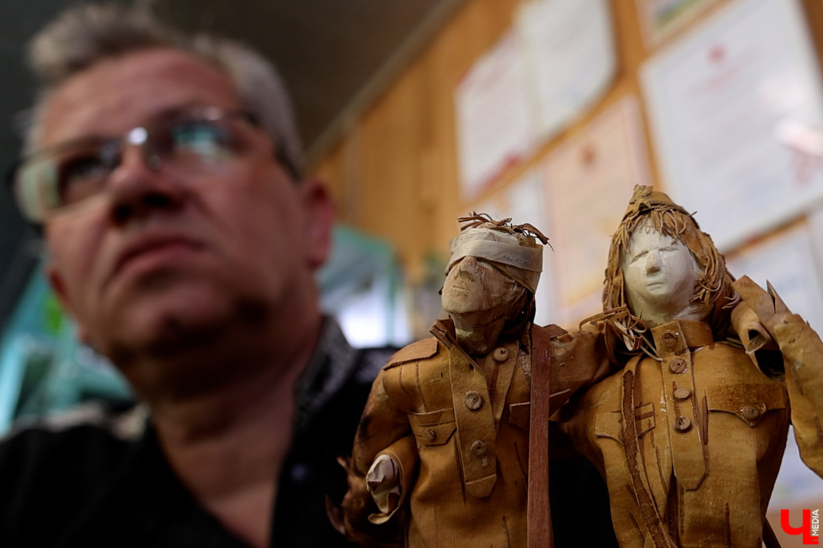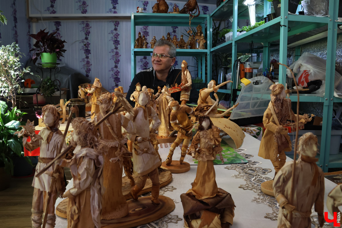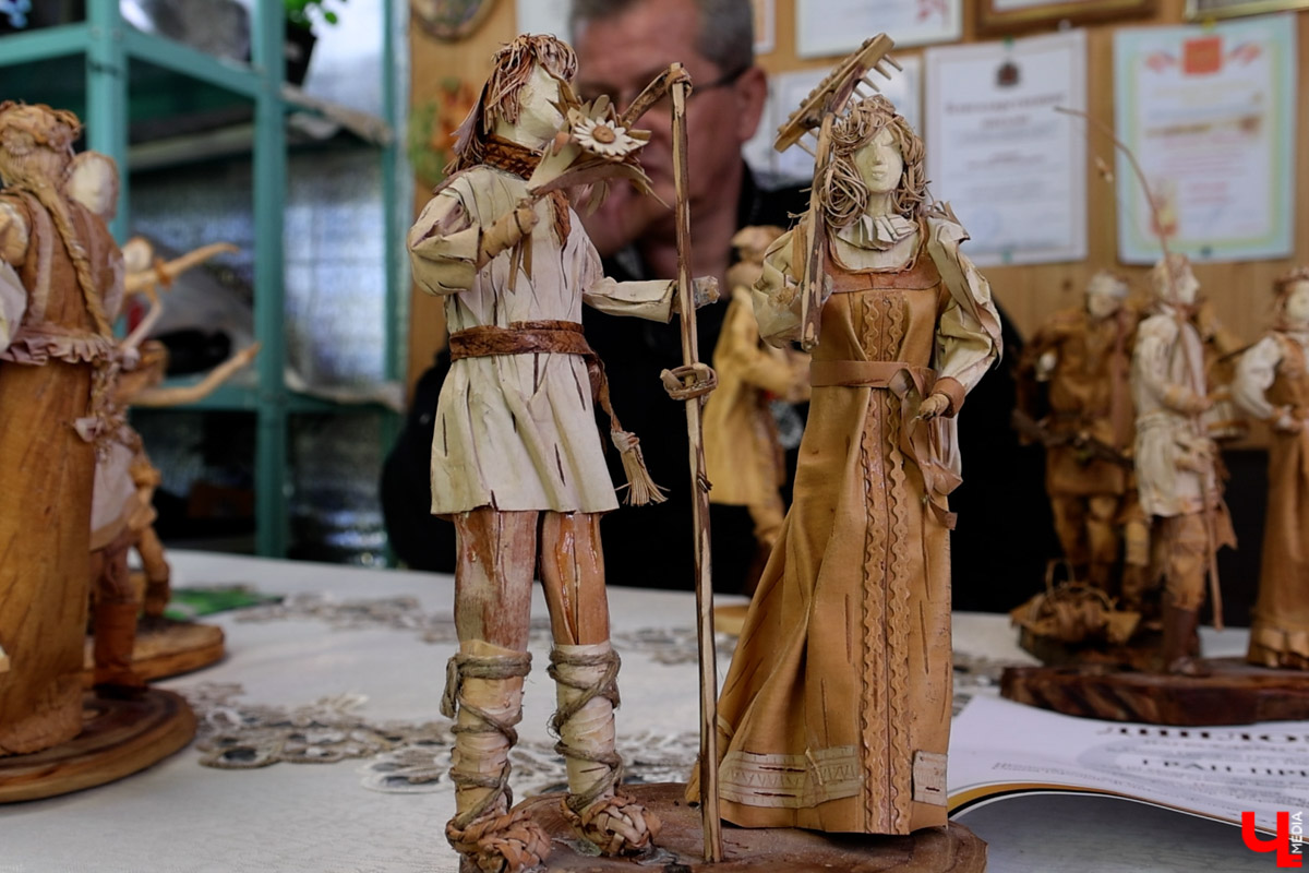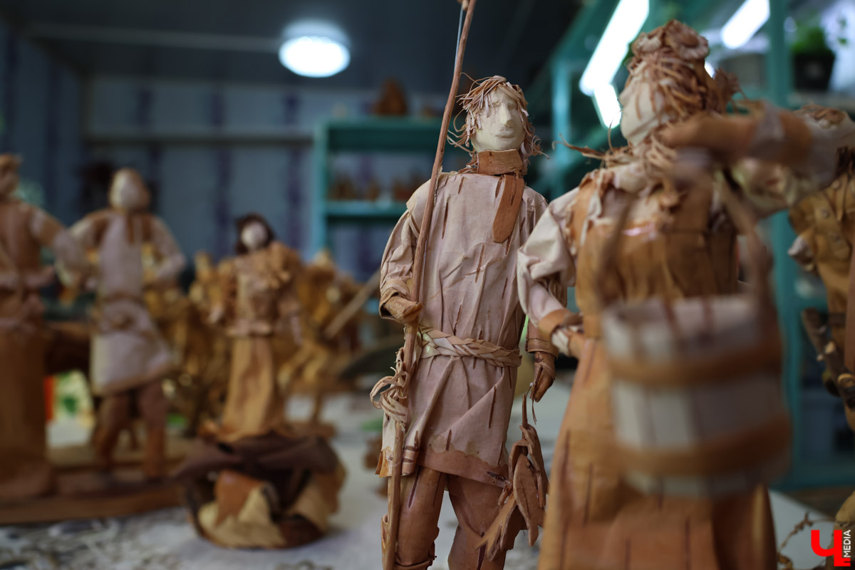 Вы видели когда-нибудь скульптурные композиции из бересты? Если нет, самое время заглянуть в гости к мастеру из Юрьев-Польского района Григорию Мишину. В этом году его работа вошла в число лучших сувениров Золотого кольца. Судьи отметили коробейника, выполненного из коры березы. Хотя на главный приз могла претендовать любая фигура: от хоккеистов до русской барышни с самоваром или балерины в пачке и на пуантах. Все куклы выполнены в единственном экземпляре и каждая настоящий шедевр.