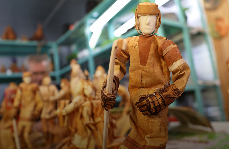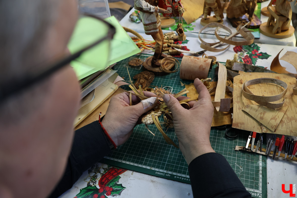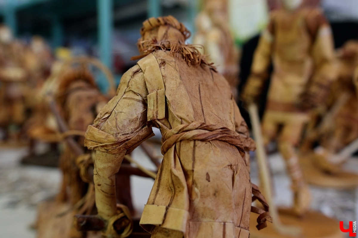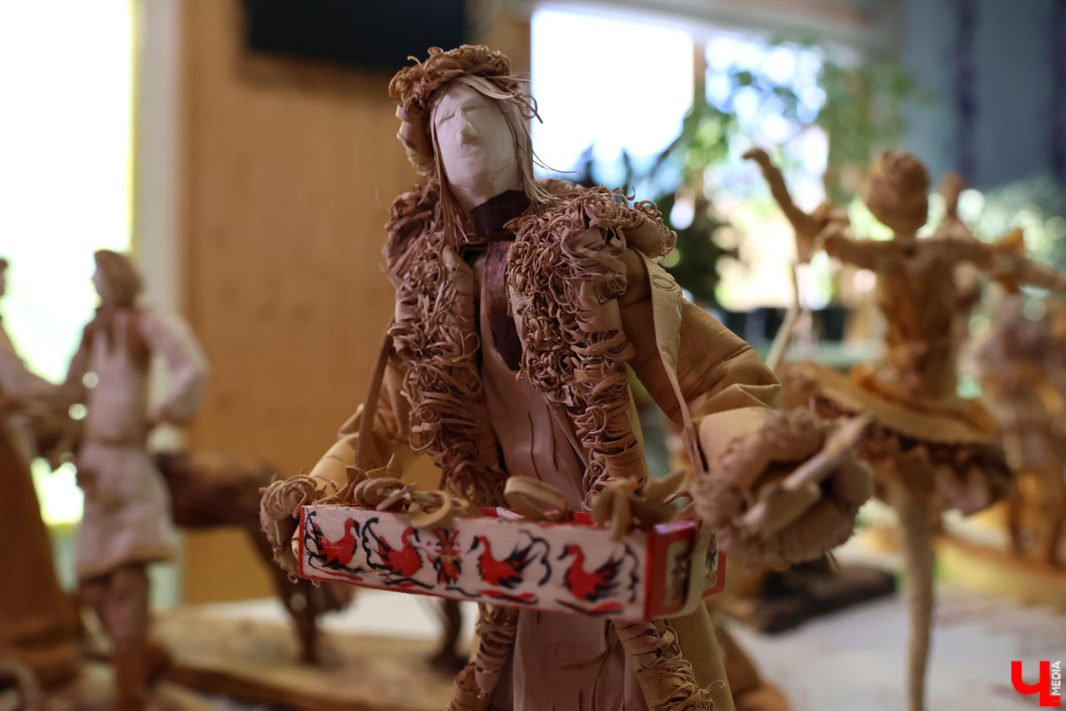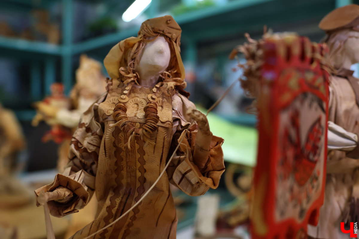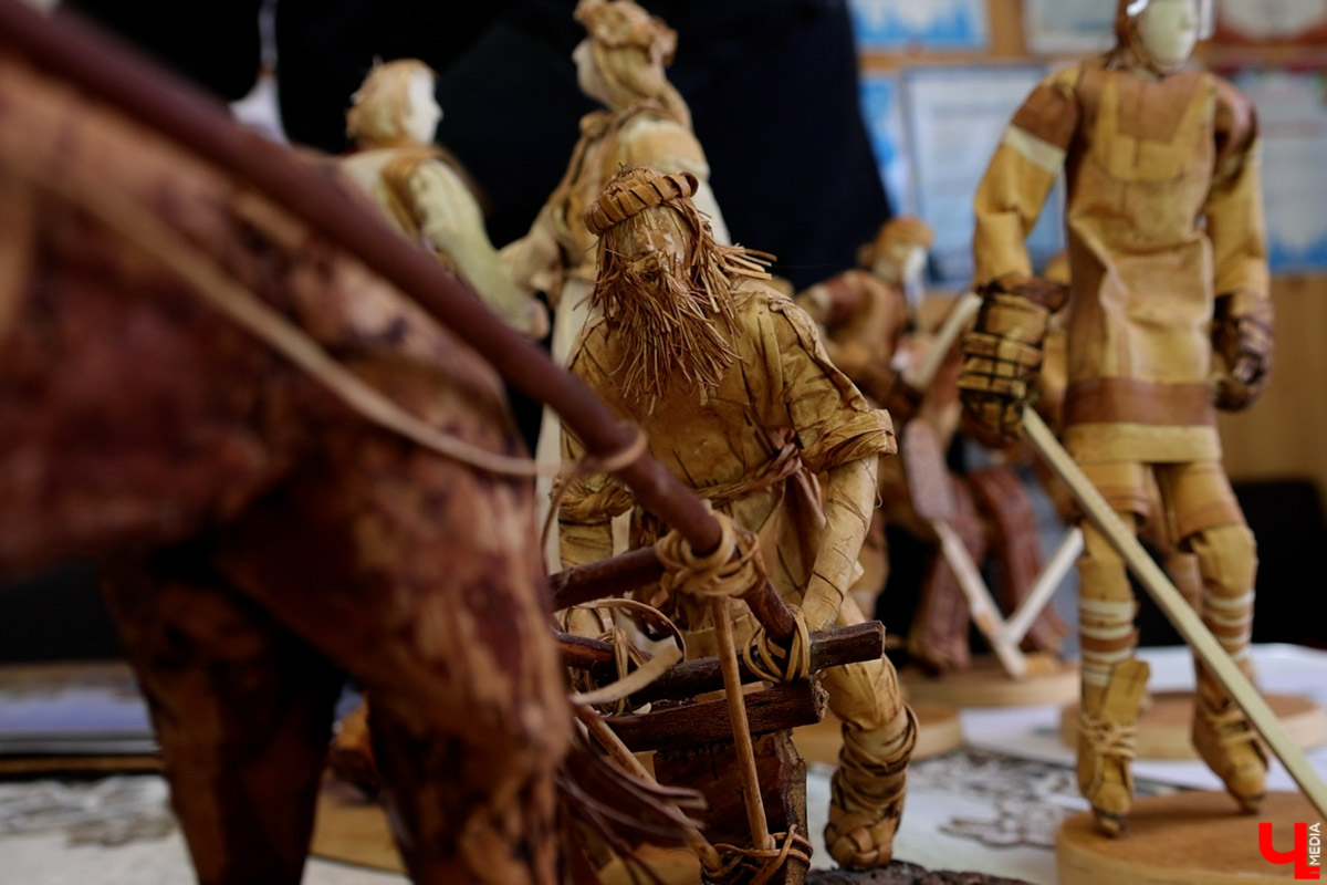 Вы видели когда-нибудь скульптурные композиции из бересты? Если нет, самое время заглянуть в гости к мастеру из Юрьев-Польского района Григорию Мишину. В этом году его работа вошла в число лучших сувениров Золотого кольца. Судьи отметили коробейника, выполненного из коры березы. Хотя на главный приз могла претендовать любая фигура: от хоккеистов до русской барышни с самоваром или балерины в пачке и на пуантах. Все куклы выполнены в единственном экземпляре и каждая настоящий шедевр.