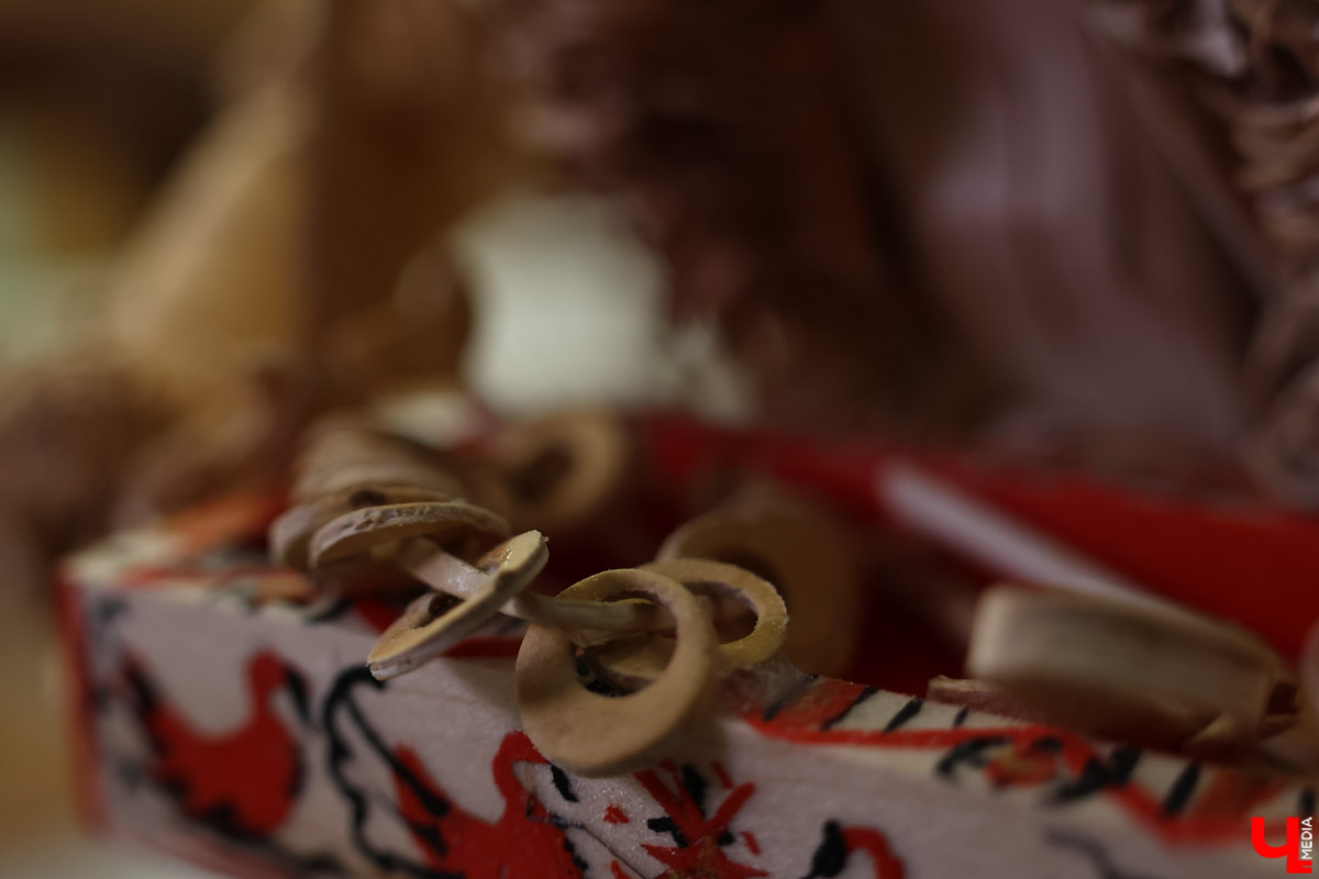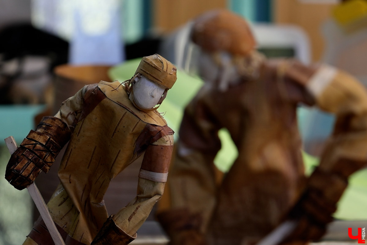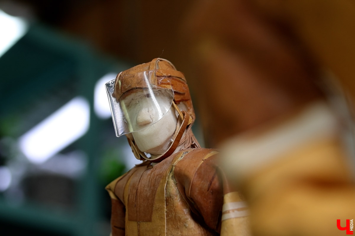 На создание каждой композиции уходит по две-три недели. И каждый раз мастер начинает работать с рисунка. Потом из липы делает голову, по традиции без глаз. В старину считалось, что деревянные куклы могут украсть душу ребенка, поэтому их «лишали» зрения. Но это не мешает мастеру ловко передавать эмоции различных персонажей.