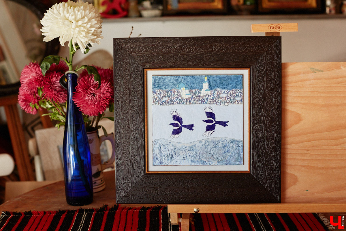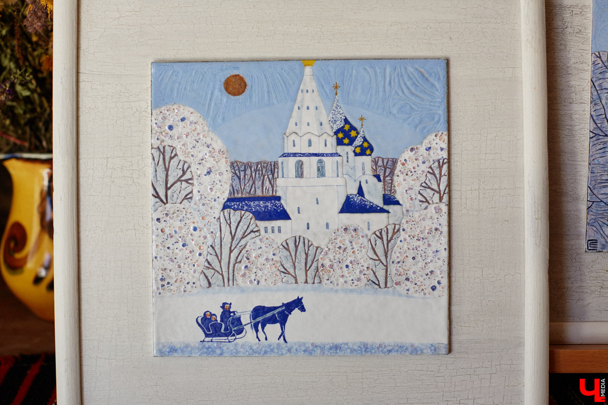 «Мне всегда нравились керамика и живопись, особенно Владимирская школа. Это один из наших таких культурных кодов. Невозможно не полюбить это, я считаю. Кокурин, Юкин, Бритов — на их выставках физически ощущаешь, как зал наполнен цветом, который через тебя проникает. Эмаль можно сравнить с финифтью и Фаберже, по технике отличается немножко, но мои корни оттуда, — поясняет Елена. — То есть выросла я из любви к владимирской живописи и керамике, это все спеклось в печи, как мои краски спекаются друг с другом, и получилась новая любовь — горячая эмаль!»