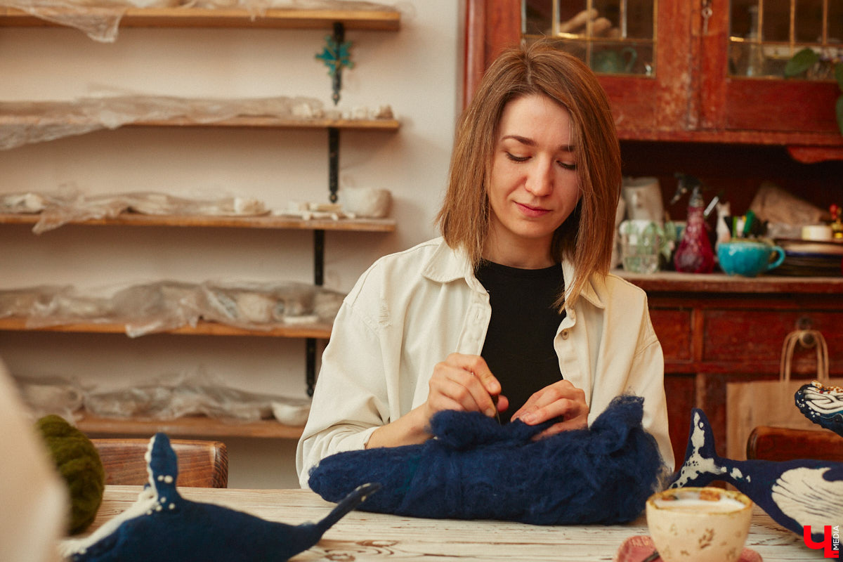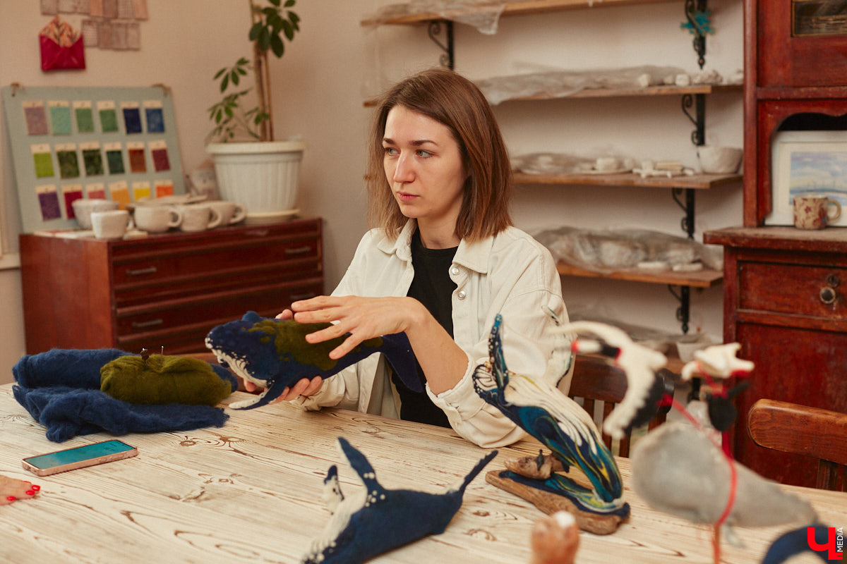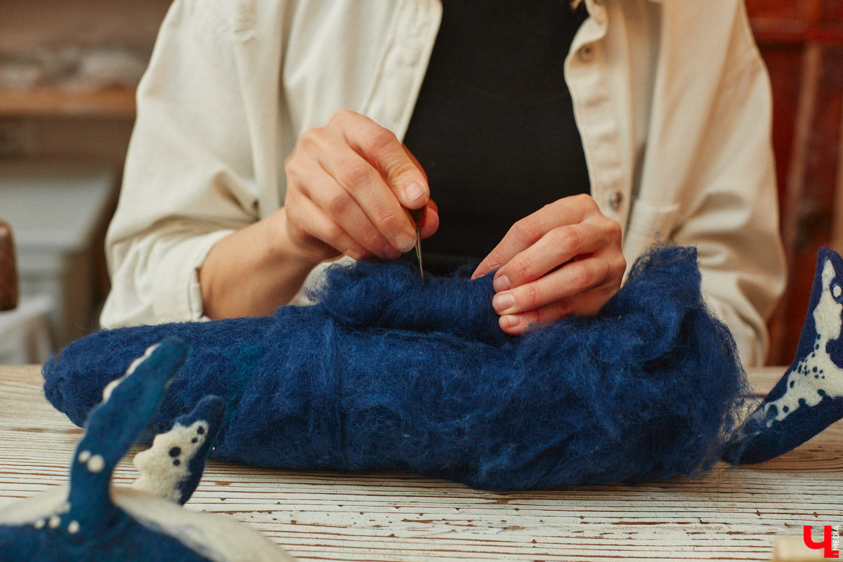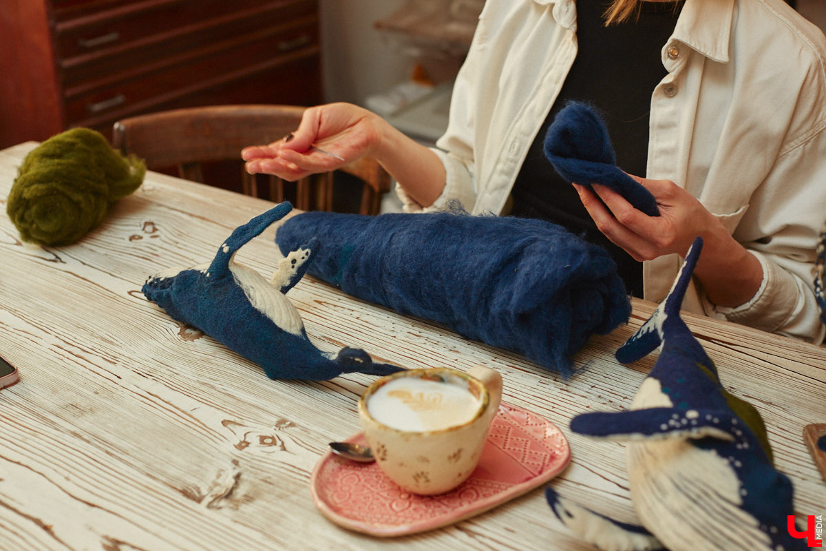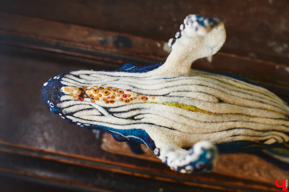 Жительница Владимира Наталья Быкова не любит, когда про нее говорят «рукодельница». Она художник-скульптор по шерсти, работает с техникой сухого и комбинированного валяния. Но для многих, кто видел ее работы, девушка просто волшебница, способная оживить фигуры из непривычного материала. Взгляните на этих китов — и сразу поймете: перед вами совсем не игрушка, а арт-объект, который украсит любой интерьер.