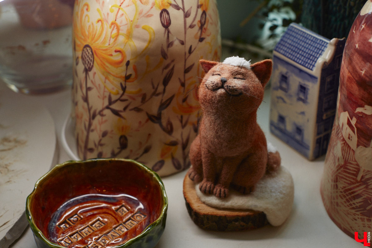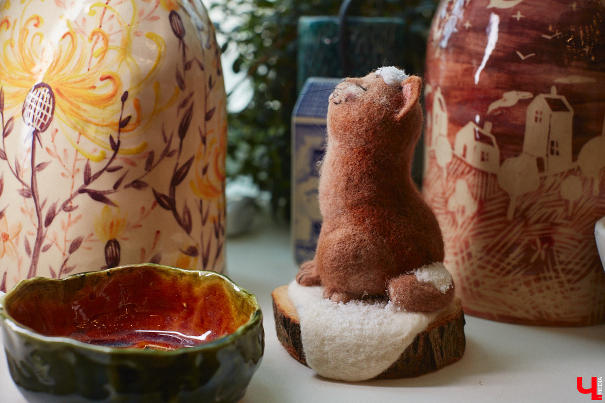 Последние два с половиной года девушка занимается валянием на регулярной основе. Многие фигуры делает на заказ, среди работ есть животные — шерстяные копии домашних любимцев. Создавать такие коллекционные игрушки непросто: у хозяев бывает свое представление о милом котенке или щенке, и угадать его получается не всегда. Приходится переделывать.