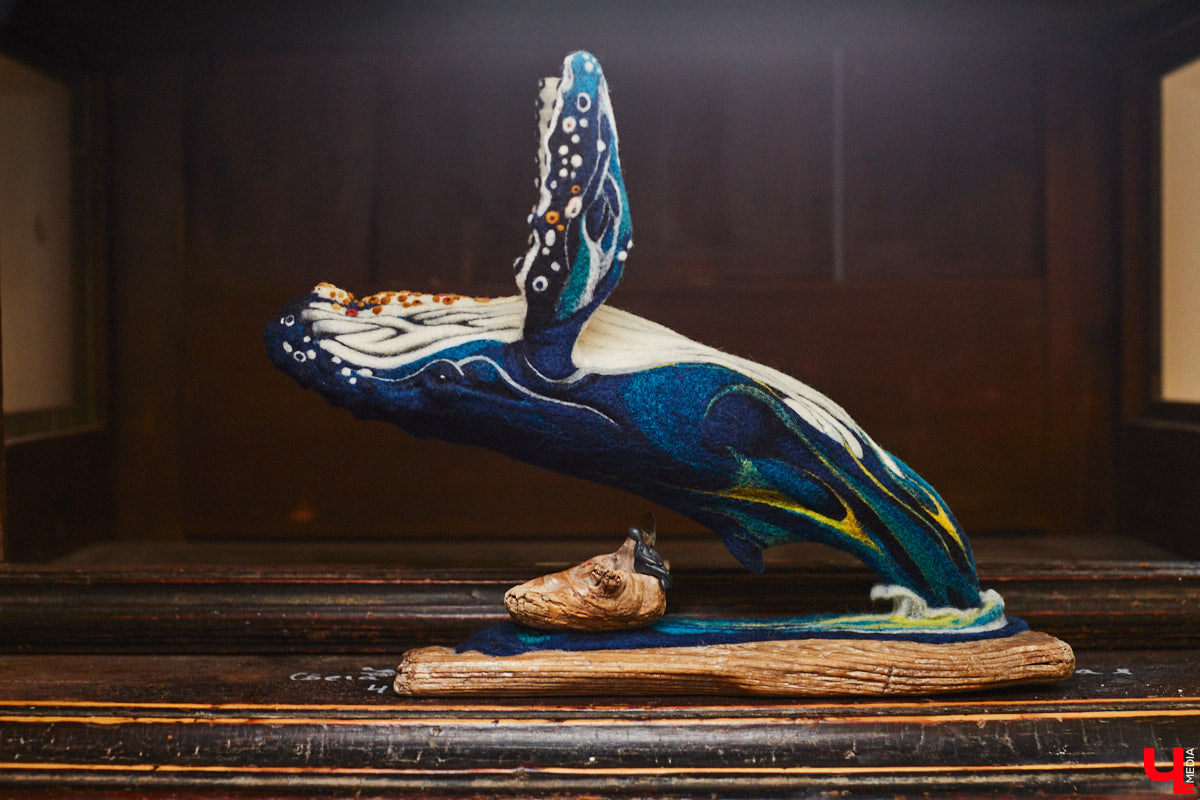 Наталья не делает что-то ради обычной формы, ей интересны скрытые смыслы. Мир, который мы представляем, размышляет она, может быть совершенно иным, как киты, прячущиеся глубоко под водой. Любимая фигура из шерсти — рассуждения о том, что привычных рамок не существует.