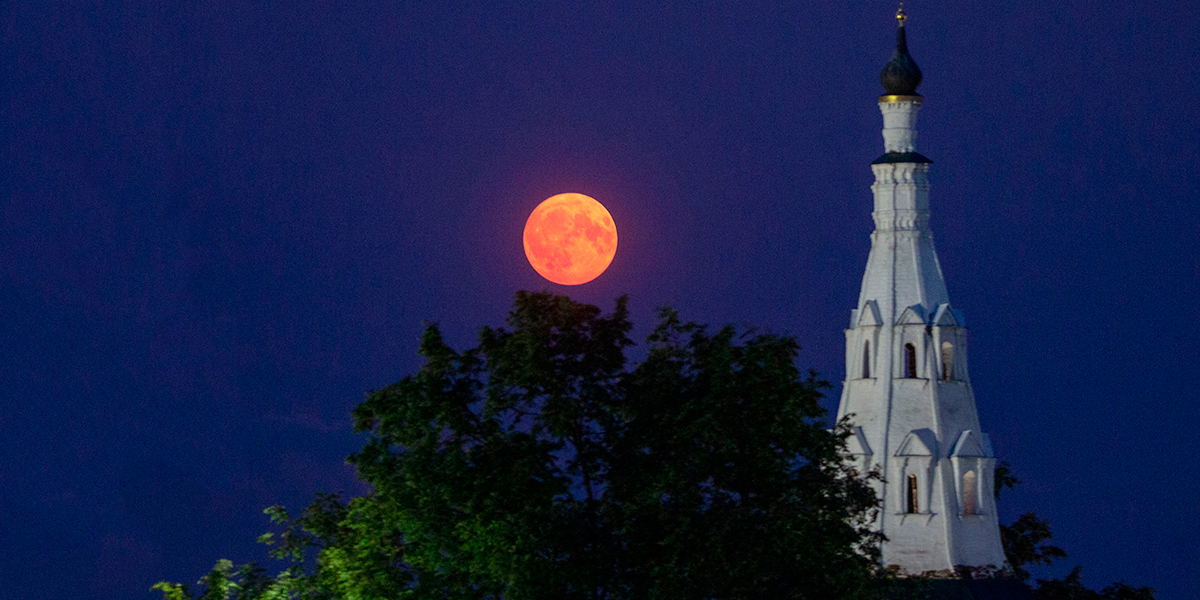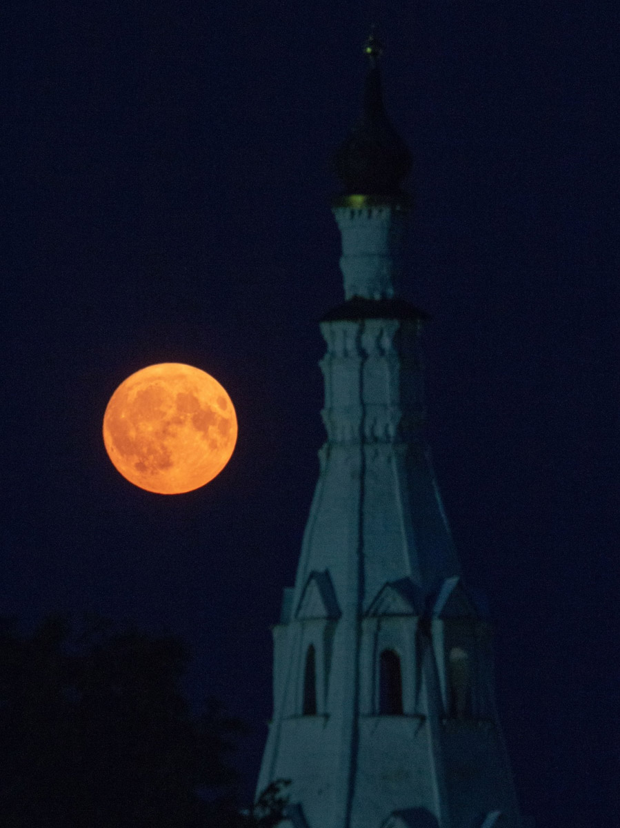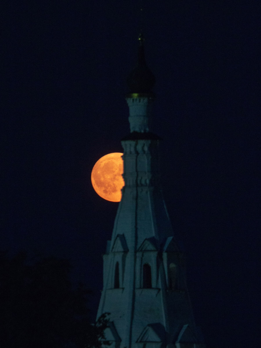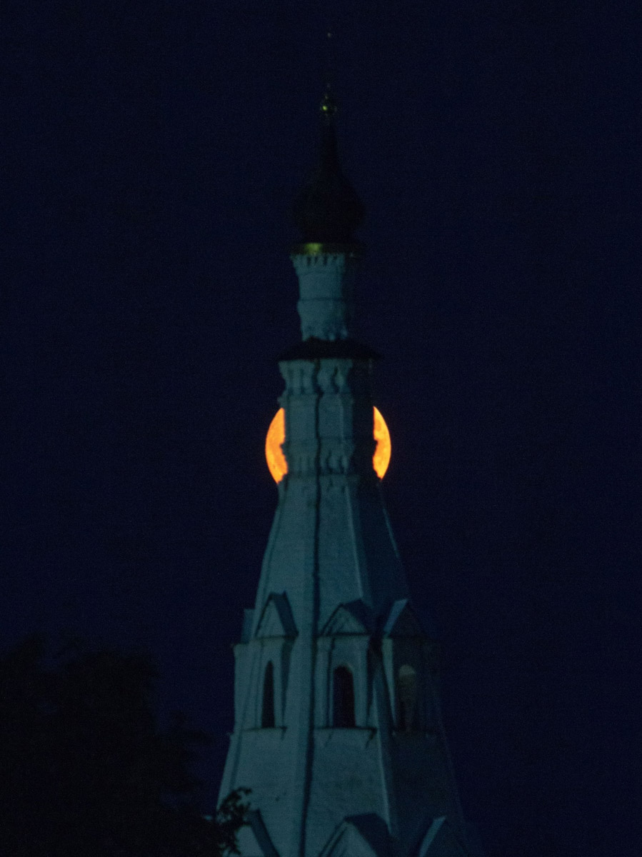Еще одни редкие летние кадры опубликовал на своей странице в социальных сетях житель Суздаля, который изготавливает деревянные макеты соборов и храмов. Фото сделаны в селе Кидекша на телеобъектив. Алексей Осетров делится снимками клубничного полнолуния.