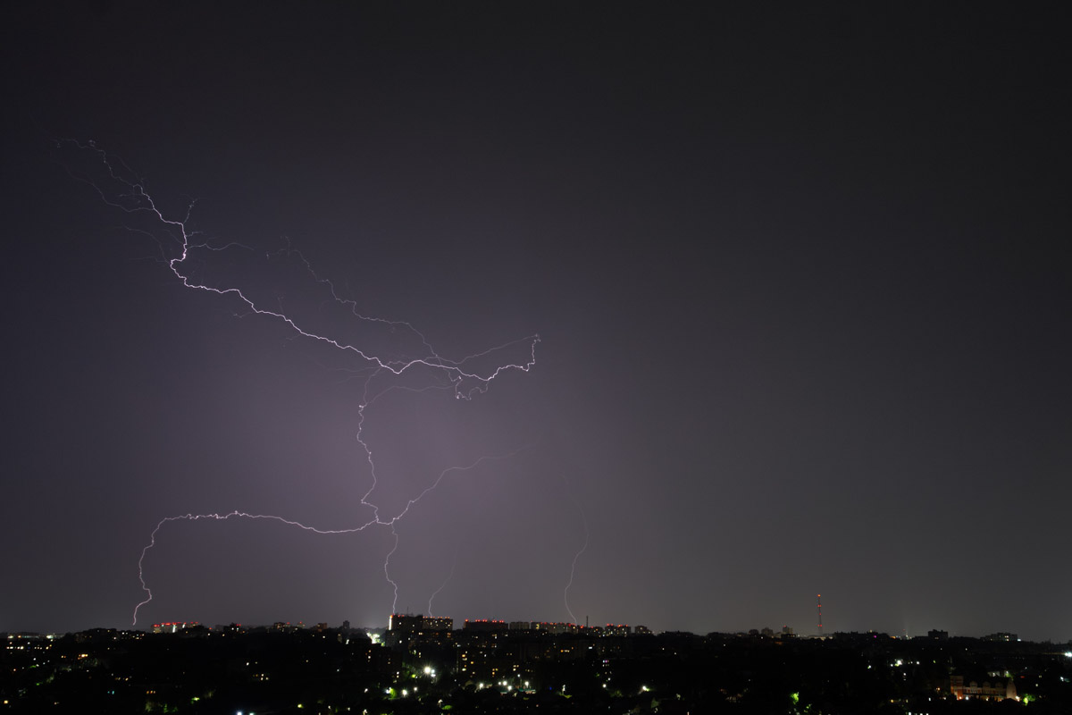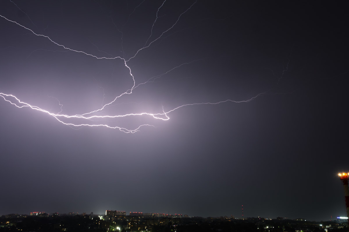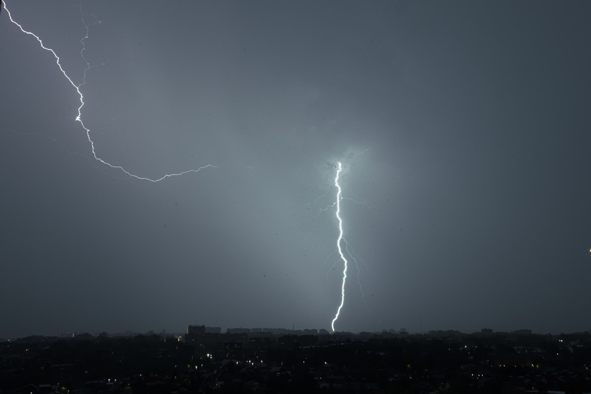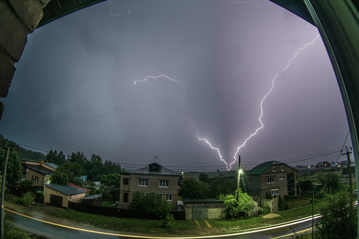 Запечатлел молнии в небе и владимирский обладатель редкой коллекции спортивных кроссовок Александр Чунаев. Снимки сделаны из окна многоэтажки.