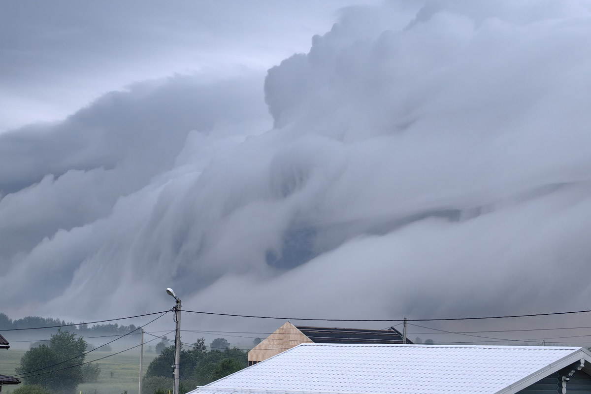 Задал настроение наступившего сезона грозовой воротник. Кадрами разгула стихии поделилась на свой странице в социальных сетях фотограф-любитель Лариса Данилова. Она любит снимать животных, птиц и природу, так что камера всегда под рукой. Поэтому девушка не растерялась, когда на небе сгустились необычные тучи.
