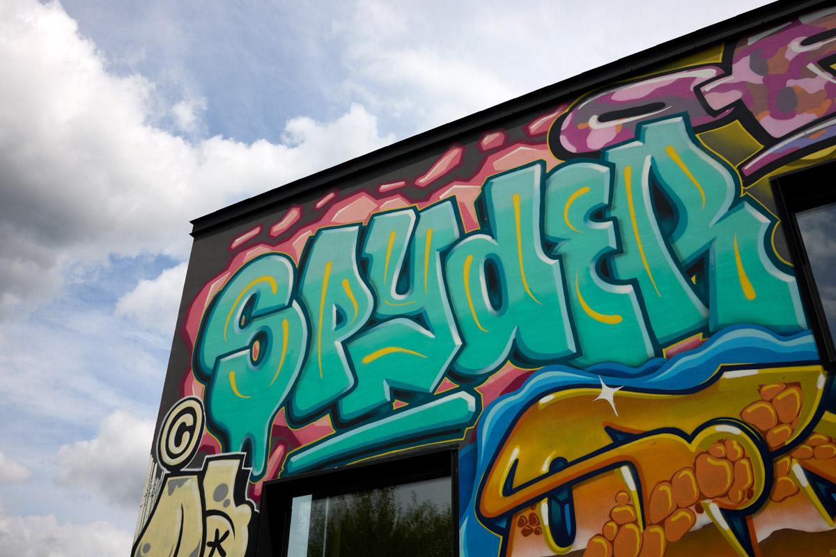 «Когда много лет назад я размышлял о собственном будущем, думал, что если появится дом, то непременно разрисую его фасады снизу доверху. Ведь всю свою сознательную жизнь я профессионально занимался настенным искусством. Но, к моему огромному удивлению, роспись этого здания стала совсем не такой, какой я представлял ее ранее, — признается Спайдер. — По мере становления начал понимать, насколько близка мне уличная граффити-культура, которая меня взрастила и дала шанс превратиться в коммерчески успешного художника. В последний момент я твердо решил, что разрисую объект в самое обыкновенное „дворовое граффити“ и не буду высасывать из пальца очередной просто приятный глазу сюжет, которых я наделал уже изрядно. Этот дом — мой символический монумент, посвященный личному творческому пути и, главное, его незыблемой основе — уличной граффити-культуре».