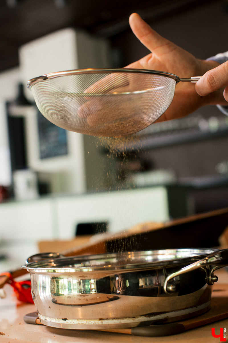 Иван, как и положено Служивому, ловко орудует «саперной» лопаткой. Этот элемент креативной подачи блюда ребята тоже нашли в гипермаркете «Глобус».