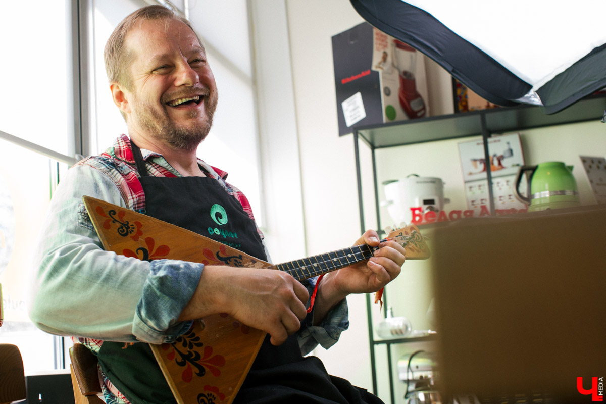 Да, о песнях. В усадьбе Марьи-искусницы без песни ни одно дело не ладится. Потому живет там странный персонаж. То ли домовой, то ли дух. Зовется Вован-Большой барабан. Но на ударных он не играет, а бренчит на балалайке. Вован появляется и исчезает, как тот Чеширский кот с колдовской улыбкой, а по усадьбе гуляют балалаечные трели. Вот и в кулинарной студии неведомо как материализовался Вован с балалайкой. И с порога стал жарить частушки: