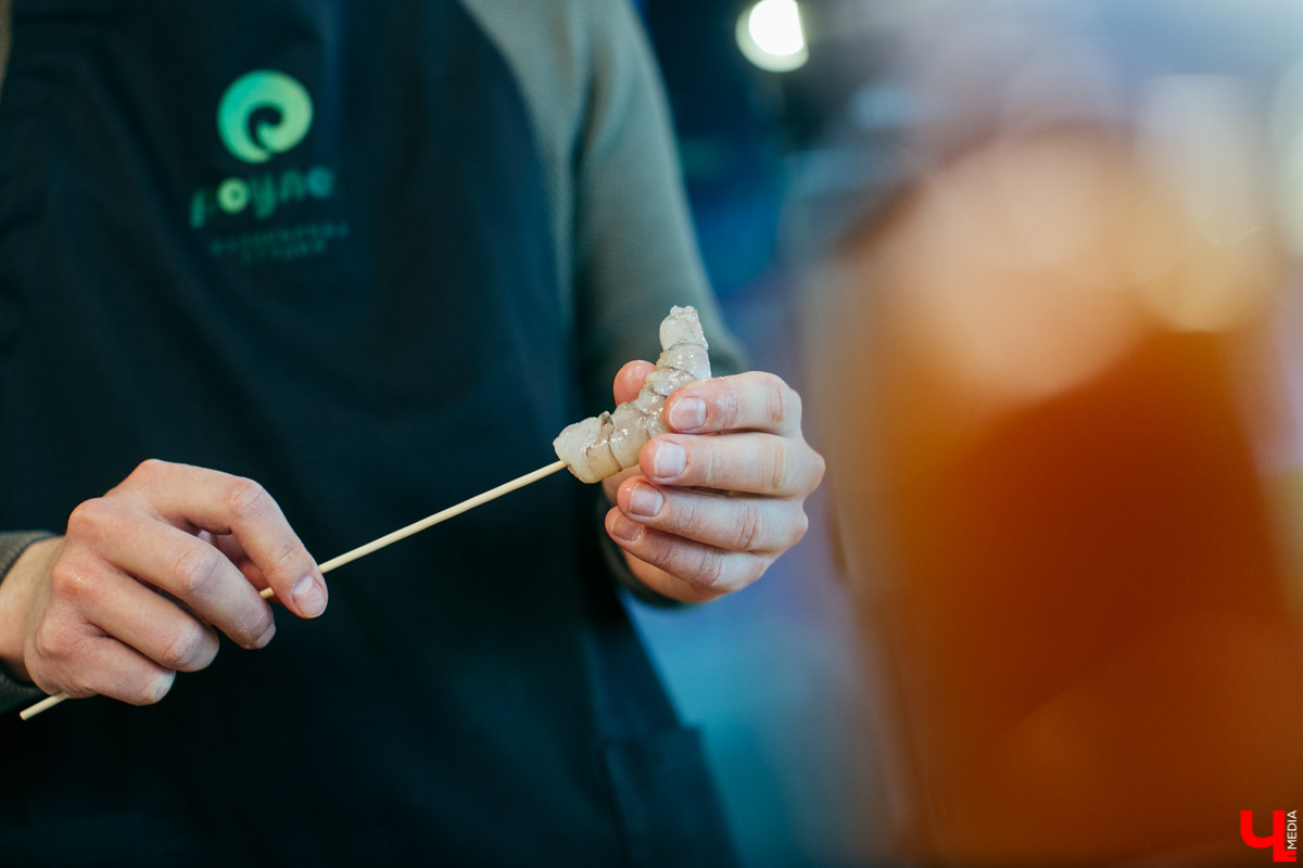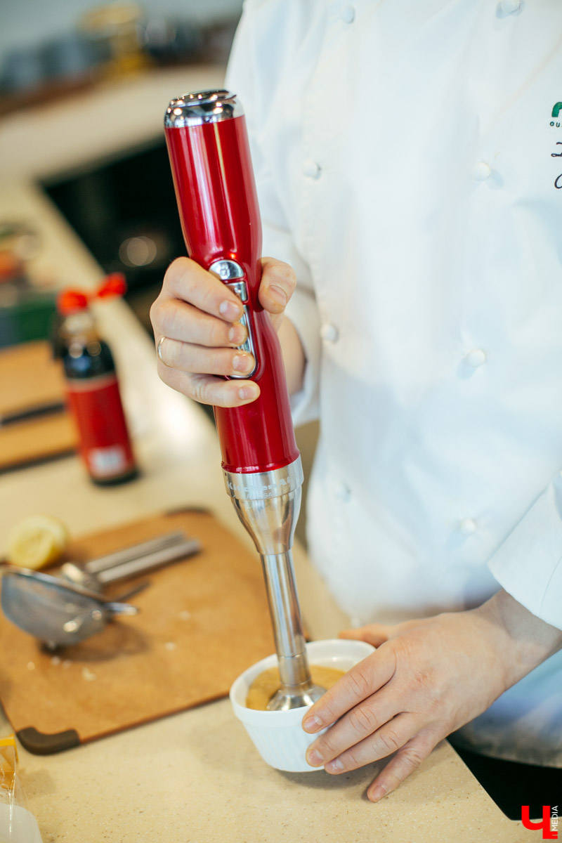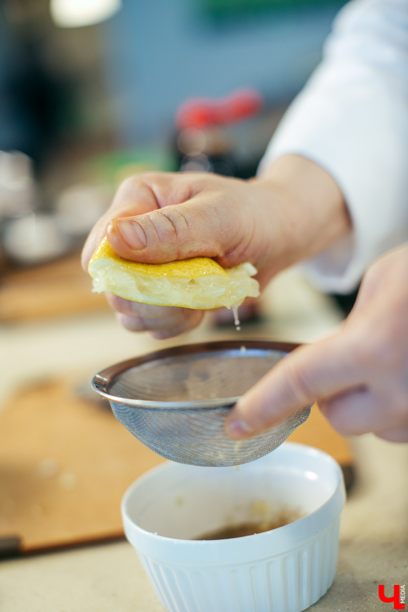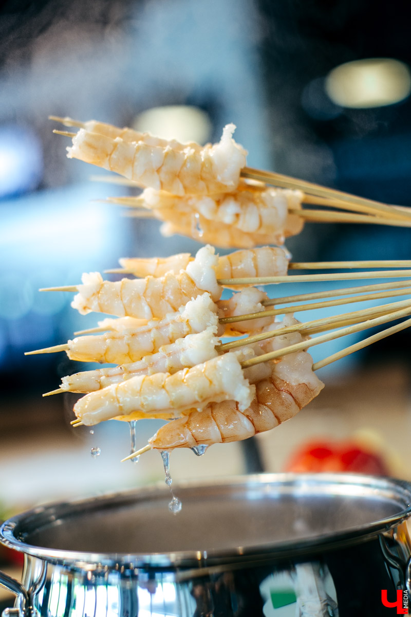 Первый урок, который Дмитрий преподал генеральному продюсеру: раздевание креветки на скорость. Мастер-шеф показал, как быстро извлечь ракообразного из панциря и вытащить кишечную вену. Следующая операция потребовала точности и бесстрашия - нужно пронзить прозрачную тушку деревянным копьем. А потом и вовсе опустить в кипящую сильно соленую воду – словно море нагрели на огне - на 3-4 минуты. Зачем насаживать бедного рачка на шпажку? Чтоб не «исказилась перспектива», точнее, чтобы они не свернулись в клубочек.