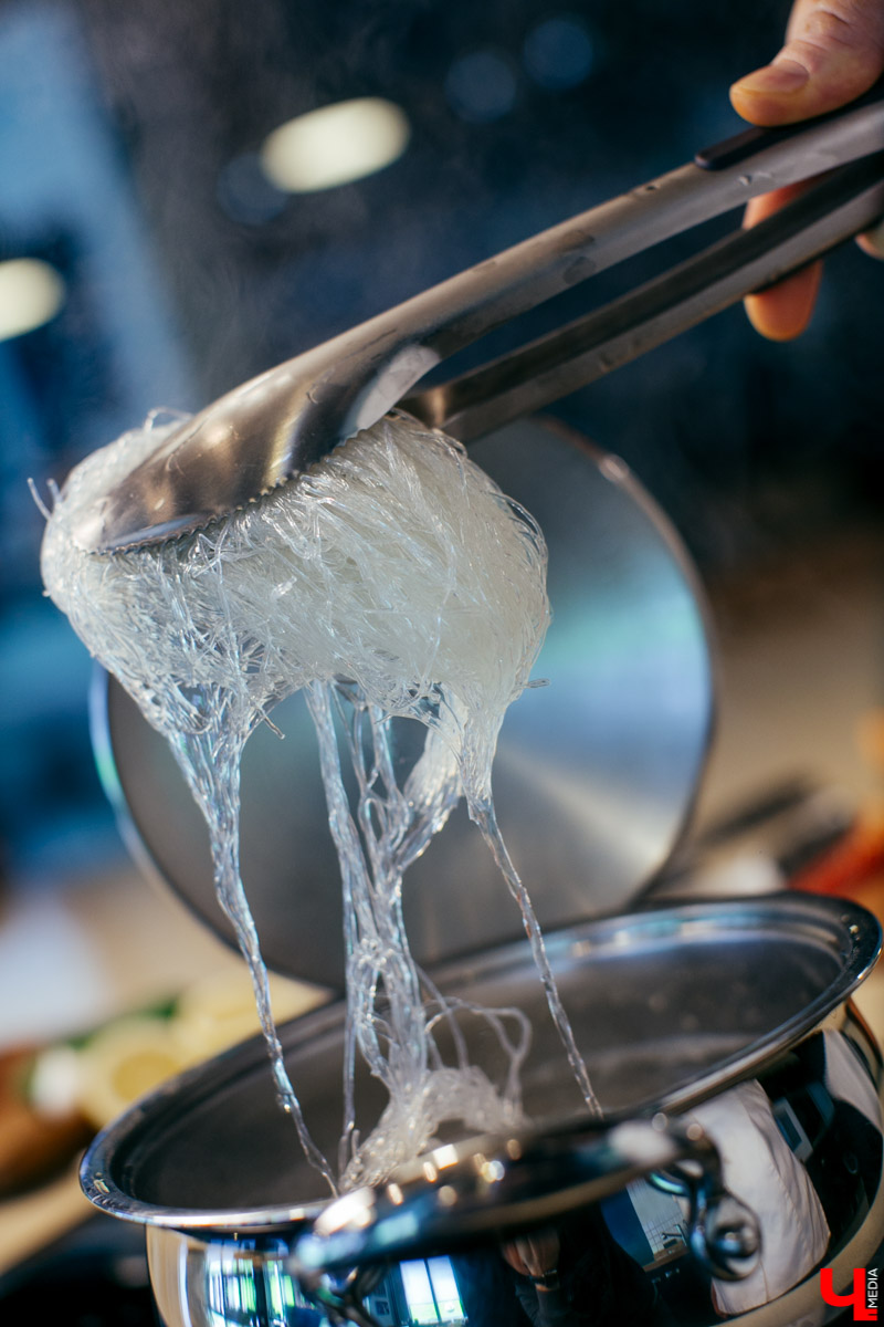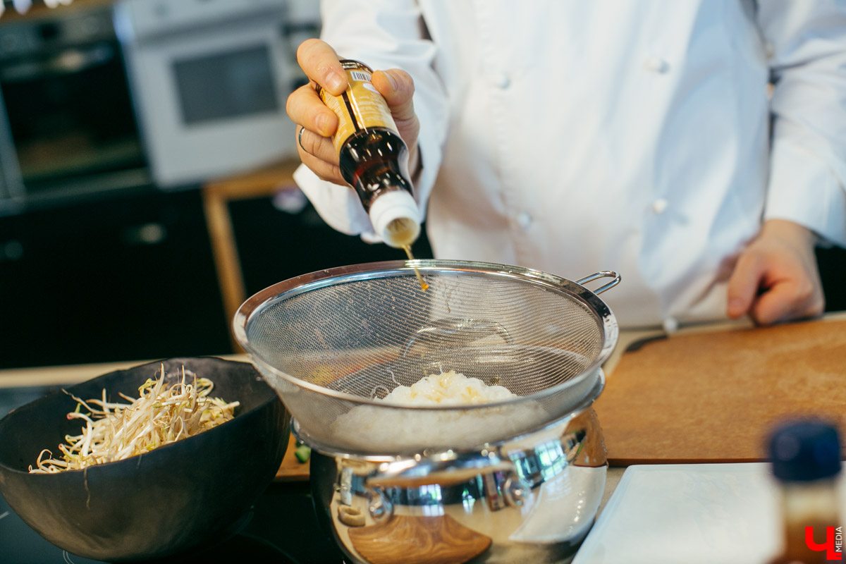 Овощной букет ждет своей минуты славы. А Надежда и Артем отваривают фунчозу. Рецепт варки есть на упаковке. Но соевый соус, которым надо полить прозрачные нити, – лайфхак от эксперта «Кулинарного ответа».