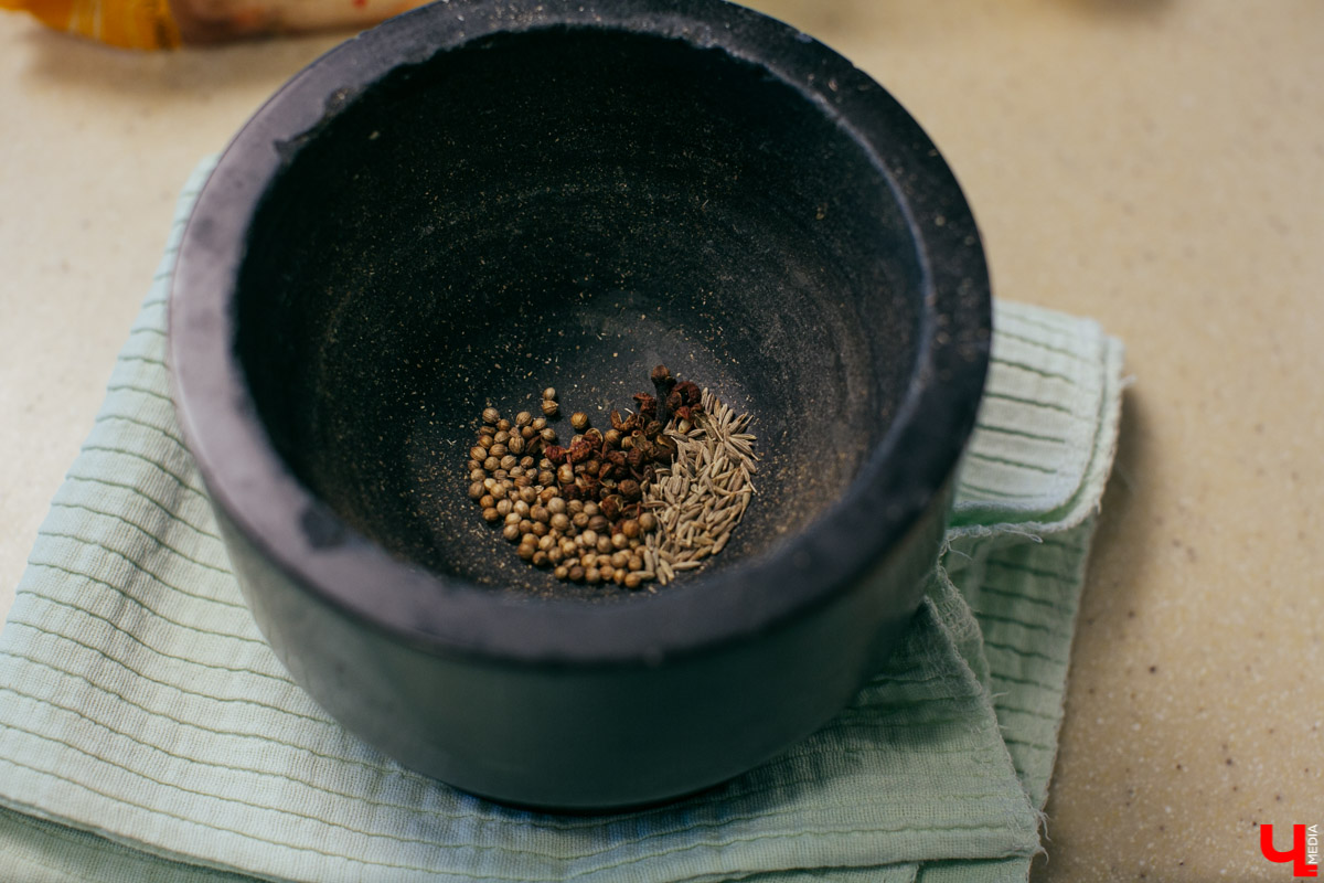 Сотни лет назад без света и интернета хозяйки на закопченной кухне перетирали пестиком в ступке снадобья… И вот в суперсовременной кухне кулинарной студии Надежда, спец по продвижению в виртуальном пространстве, с воодушевлением измельчает кумин, зиру, перец и гвоздику. Захватывающее зрелище.