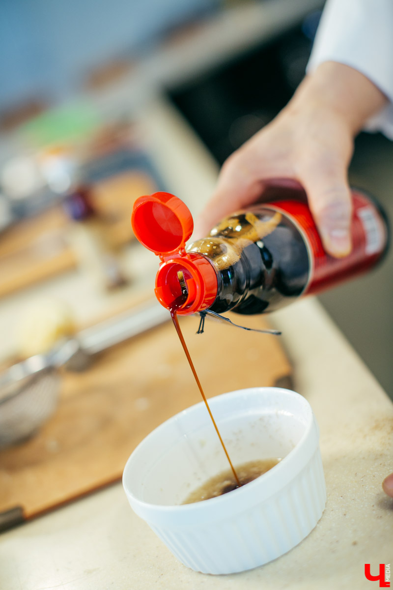 Измельченные специи отправляются к смеси соевого соуса, кунжутного масла, лимонного сока и чеснока. Взбитый до консистенции эмульсии экзотический соус одним только ароматом телепортирует нас куда-то на Желтое море.