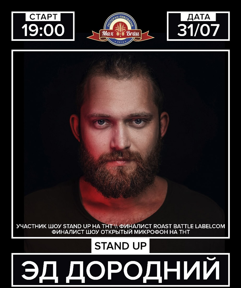 Во Владимир приезжает Эд Дородний. Участник Stand Up на ТНТ, финалист «Открытого микрофона» и Roast Battle на Labelcom выйдет на сцену «Макс Брой», чтобы устроить вечер юмора без цензуры. Перед выступлением зрителей ждет разогрев от владимирских комиков.