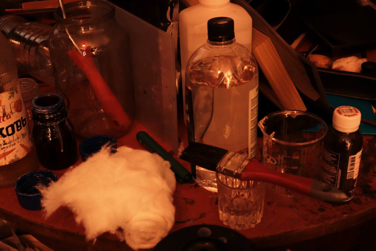Процесс амбротипии похож на ритуал, но все, что делает Илья, имеет строгую логику. Сначала берется стеклянная пластина — обычное, ничем не примечательное стекло, но именно оно станет основой будущего изображения. Его надо шлифовать, полировать, обезжиривать — все вручную. Затем — коллодий. Это раствор нитроцеллюлозы в смеси эфира и спирта, в который вводятся соли. Светочувствительными они становятся, соединяясь с азотнокислым серебром.