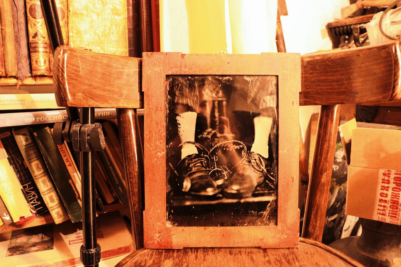 В эпоху, где снимок делается за долю секунды и тут же превращается в «идеал» с помощью фильтров, Илья Поляков идет в обратную сторону — туда, где время замедляется, а изображение рождается на стекле. Он называет себя прежде всего писателем, но последние полгода с головой ушел в мир, пришедший из XIX века, — в амбротипию. Техника позволяет получить фотографию прямо на стекле, в единственном экземпляре, без негативов и постобработки. И именно в этом, по словам нашего собеседника, заключается ее магия.