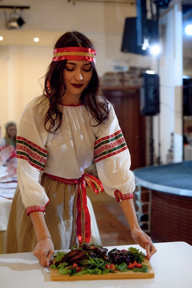 Основательно подготовилась к кулинарному этапу и Людмила Пашковская, которая вышла на сцену в национальном мордовском костюме. Музыкальным сопровождением стала народная песня на языке носителей данной культуры, которую акапельно исполнила мама участницы. Таким образом девушка презентовала блюдо традиционной кухни «Медвежья лапа». Зоозащитники могут выдохнуть: в наши дни для приготовления используют стандартные виды мяса.