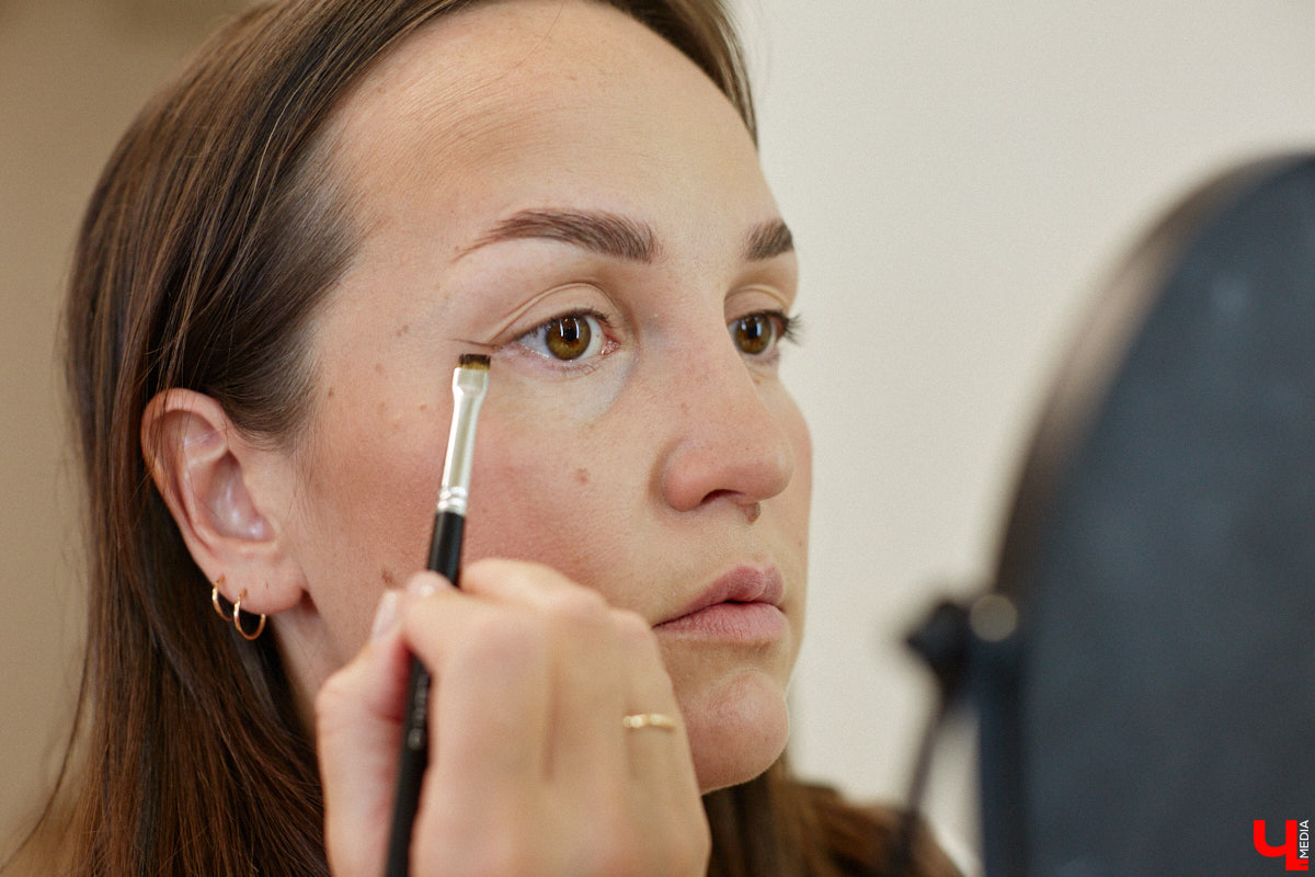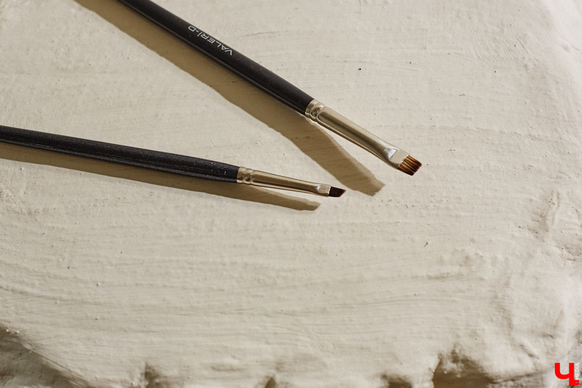 Все дело в кисточке, которая, советует Ирина, должна быть плоской и тонкой. Она сама нарисует прямую линию, вывести которую обычно получается не у всех. Для этого нужно лишь найти точку пересечения верхнего века с нижним. Взгляд в зеркало должен быть прямой и без эмоций, будто делаете фото на паспорт.
