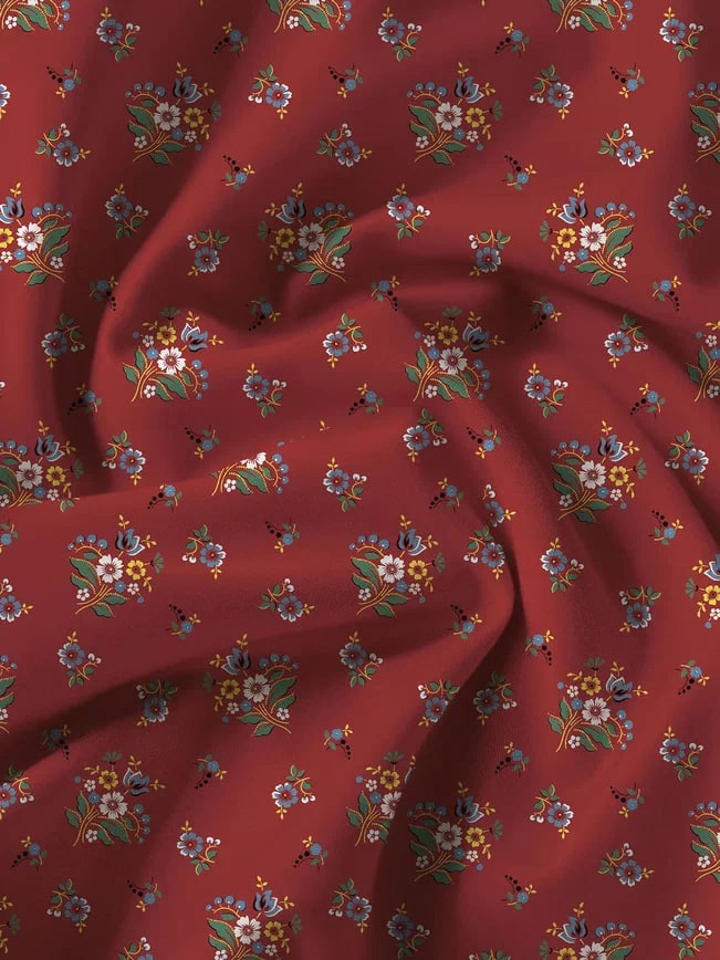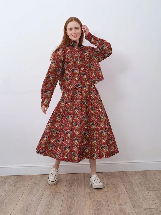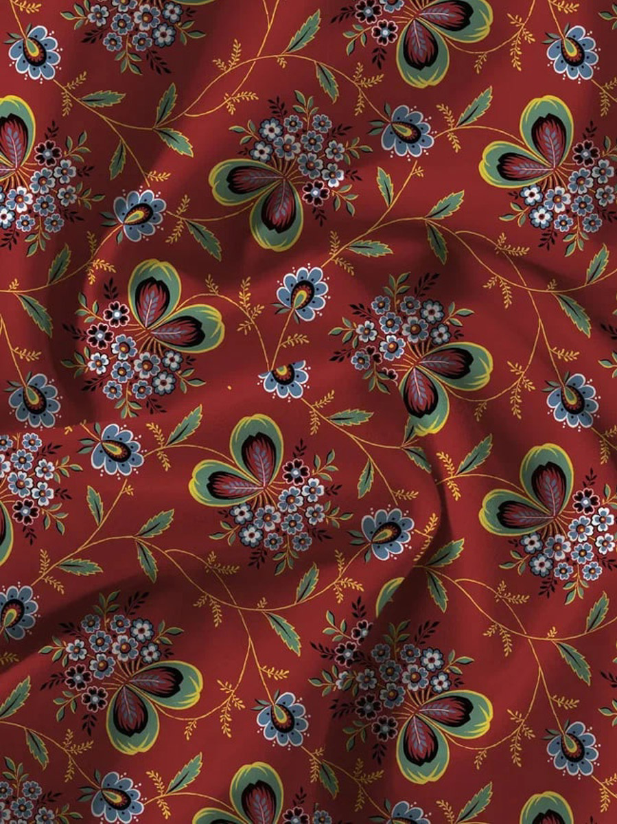 А вот продолжается проект совместно с музеем-заповедником «Александровская слобода» — в центре внимания уже барановские ситцы. Те самые ярко-алые ткани с растительными мотивами и их элементами, которые изготавливались на фабрике в Карабанове. Они же в 1889 году на Всемирной выставке в Париже поделили триумф с только что построенной Эйфелевой башней. А ткань Троицко-Александровской мануфактуры с рисунком «Смородиновый лист» получила Гран-при.