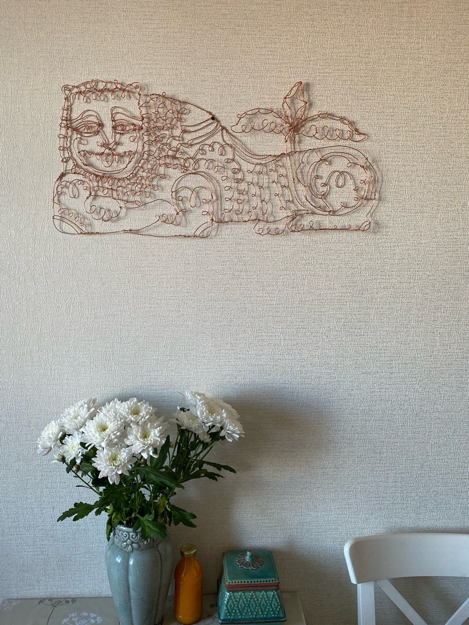 Колорит 33-го региона тоже читается в произведениях Мари. К примеру, из проволоки она создала внушительного владимирского льва. Как и полагается, добродушного и гостеприимного. К слову, царь зверей — нередкий гость в ее работах.