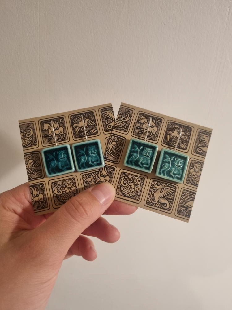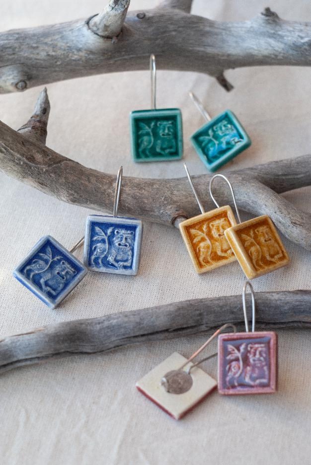 И снова лев, как главный символ нашей земли, улыбается всем с ремесленных изделий. На этот раз популярный образ запал в душу авторам бренда «Барин и мать» из Санкт-Петербурга. Ксения Веретенникова и ее отец Вадим Лавров создают украшения из керамики по технологии исторических изразцов. Через аутентичные образы они передают любовь к русской традиционной культуре.