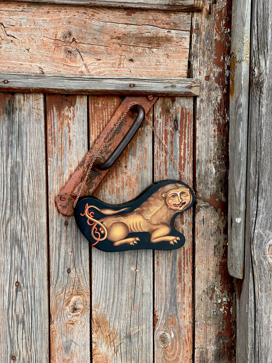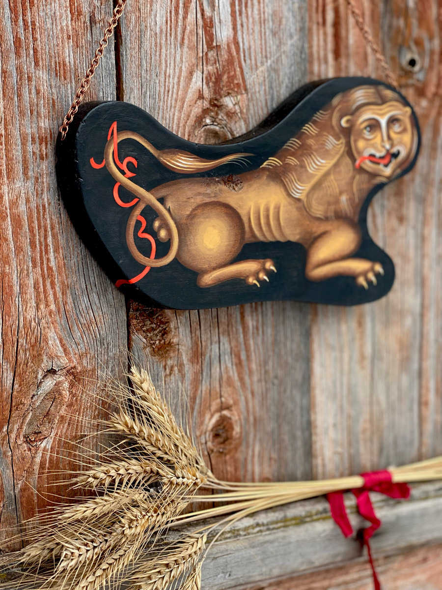 Владимирский лев из проволоки и деревянец с изображением храма Покрова на Нерли