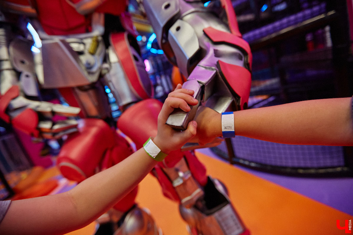 Завершат удивительный день веселые игры с огромным роботом. Рост фигуры больше двух метров, появление на площадке такого персонажа нельзя не заметить. Хотите пожать руку трансформеру — обязательно задержитесь в Активити-парке до 18:30. Этот герой понравится и детям, и взрослым.