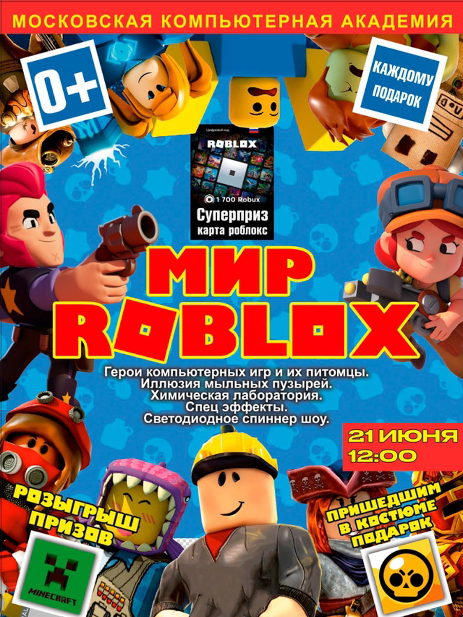Московская компьютерная академия представляет интерактивный спектакль, построенный по мотивам игр на платформе Роблокс. Герой шоу попадает в компьютерную игру, из которой ему не удается выбраться, и только помощь и участие зрителей помогают улучшить логическое мышление, развитие в изучение игровых миров и выхода из них. Зрителей ждет шоу с использованием современных технологий и спецэффектов.