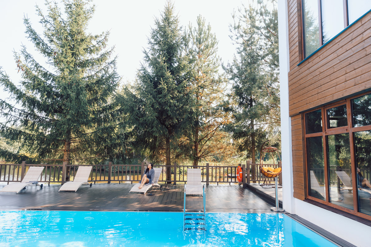 Он имеет подогрев, циркуляцию воды, а также из него открывается шикарный вид на реку. Все вместе это создает эффект «живой воды». Купаться с комфортом можно даже в прохладную погоду!